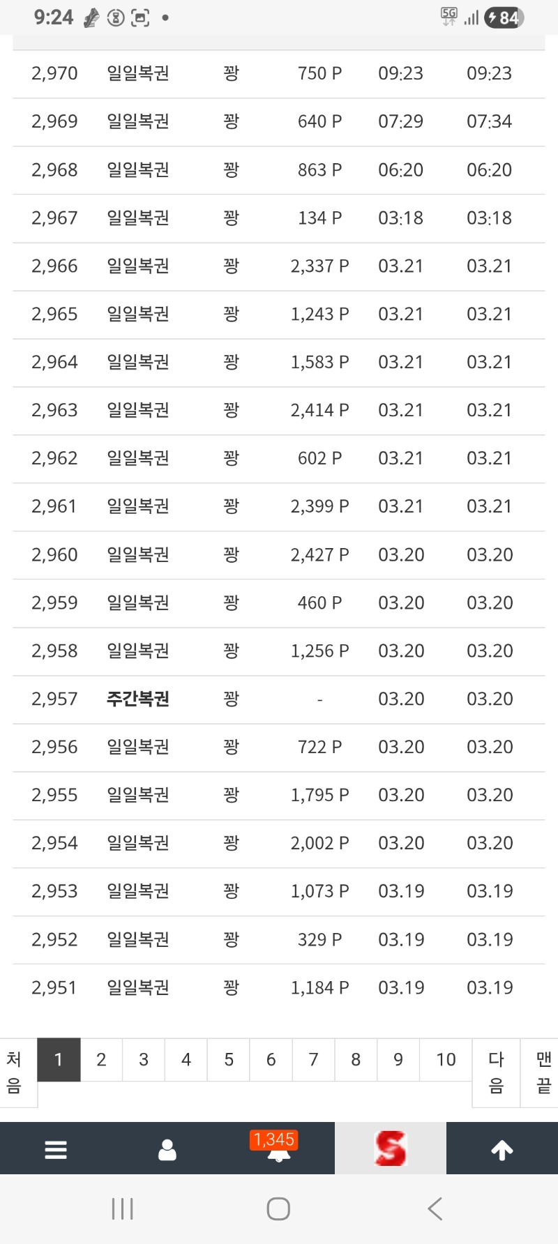 주복은 안오고 일복은 꽝만 나오고. 북쟁이리 2 0 0 09:24:53 *기프티콘 바코드 노출 주의* <- 이거 뭔가요? 0 0 https://seulca1.com/bbs/board.php?bo_table=free&wr_id=3710573 Author 4 3 Lv.14 북쟁이리 14 29,357,284 (90%) 북쟁이리님 보유 포인트 : P 2,750 +2 03.22 주복은 안오고 일복은 꽝만 나오고. +1 03.22 이모소환 +2 03.22 굿모닝입니다 +1 03.22 출첵 +2 03.22 모닝복권