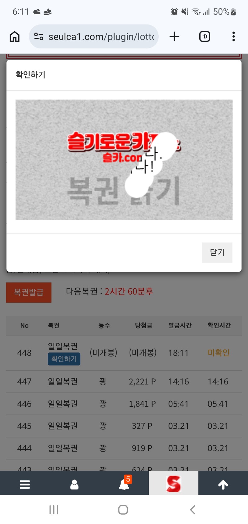 저녁복췍! 무조건한방가자 2 0 0 18:12:26 *기프티콘 바코드 노출 주의* <- 이번주는 역시 꽝으로 0 0 https://seulca1.com/bbs/board.php?bo_table=free&wr_id=3712254 Author 0 0 Lv.8 무조건한방가자 8 3,550,117 (55%) 무조건한방가자님 보유 포인트 : P 19,243 +2 03.22 저녁복췍! 03.21 슬카로또 당첨후! +1 03.21 저녁늦참복! +2 03.21 오후복췍.. +2 03.21 꽈앙이 오전에