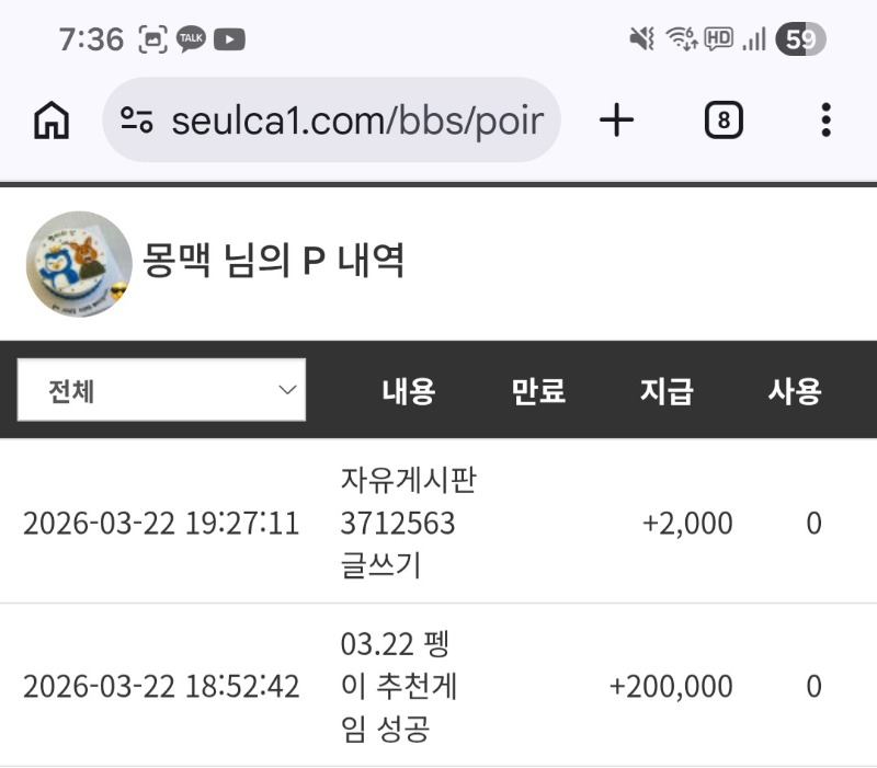 펭구르르추겜 슬포개시 몽맥 10 0 0 19:42:34 *기프티콘 바코드 노출 주의* <- 0 0 https://seulca1.com/bbs/board.php?bo_table=free&wr_id=3712595 Author 56 29 Lv.19 몽맥 19 211,562,935 (0%) 몽맥님 보유 포인트 : P 705,593 +7 03.22 다 매진된 이후에야 나온 이번주마지막 쌍복~ +20 03.22 살다보니 슬카에서 이런광경을 다 보게되네요 ㅎㅎ +18 03.22 최바비 다섯번째순서 양이형님 결과공유~ +10 03.22 펭구르르추겜 슬포개시 +10 03.22 호넷 돌발은 뎅이네잉 아숩다