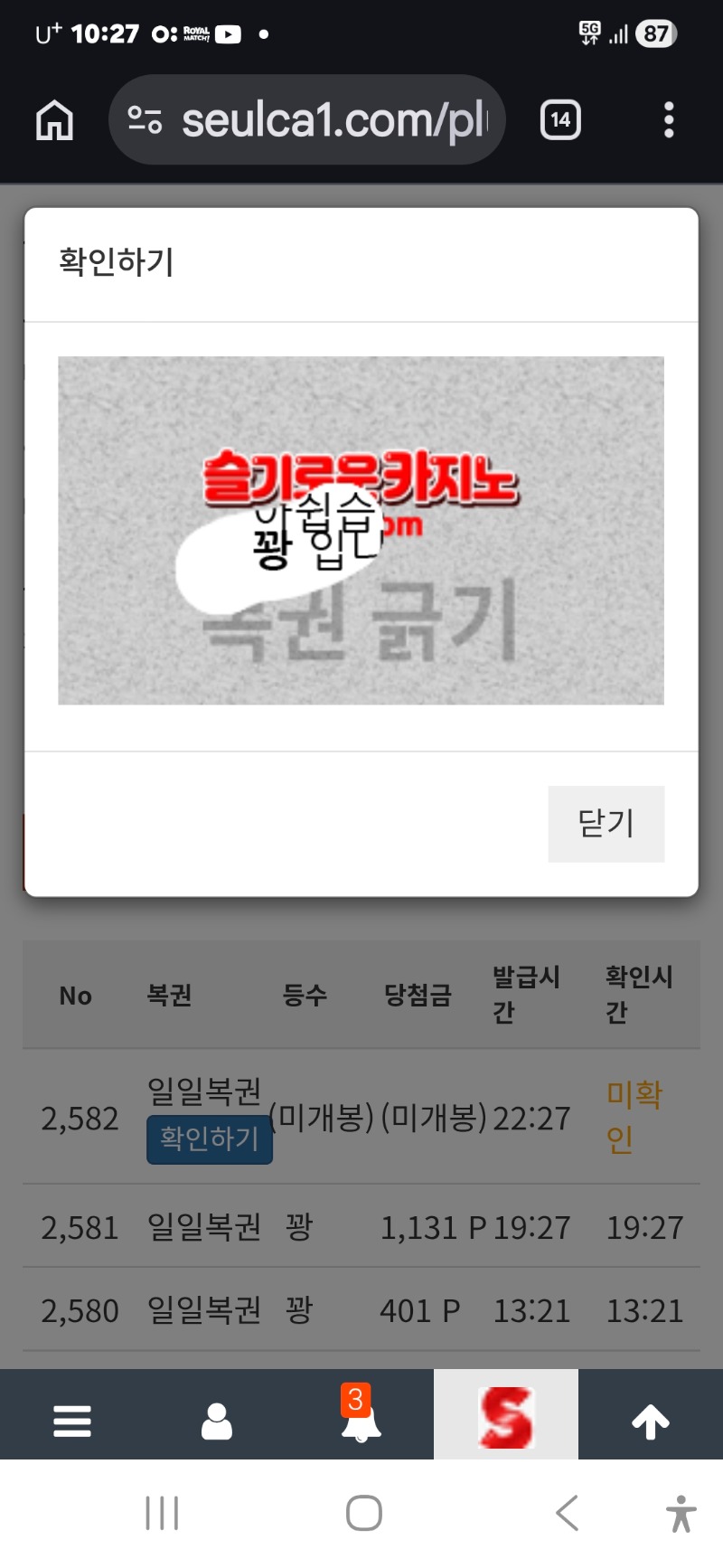 이번주 막 복권마저 꽝 ㅠ 안양하마 2 0 0 22:28:50 *기프티콘 바코드 노출 주의* <- 0 0 https://seulca1.com/bbs/board.php?bo_table=free&wr_id=3713214 Author 3 1 Lv.16 안양하마 16 63,926,460 (69%) 안양하마님 보유 포인트 : P 101,698 +2 03.22 굿밤되세요 +2 03.22 이번주 막 복권마저 꽝 ㅠ +2 03.22 빠른보상 감사합니다 +6 03.22 포교후 리필 국롤 ㅎ +16 03.22 한달만에 겨우 포교