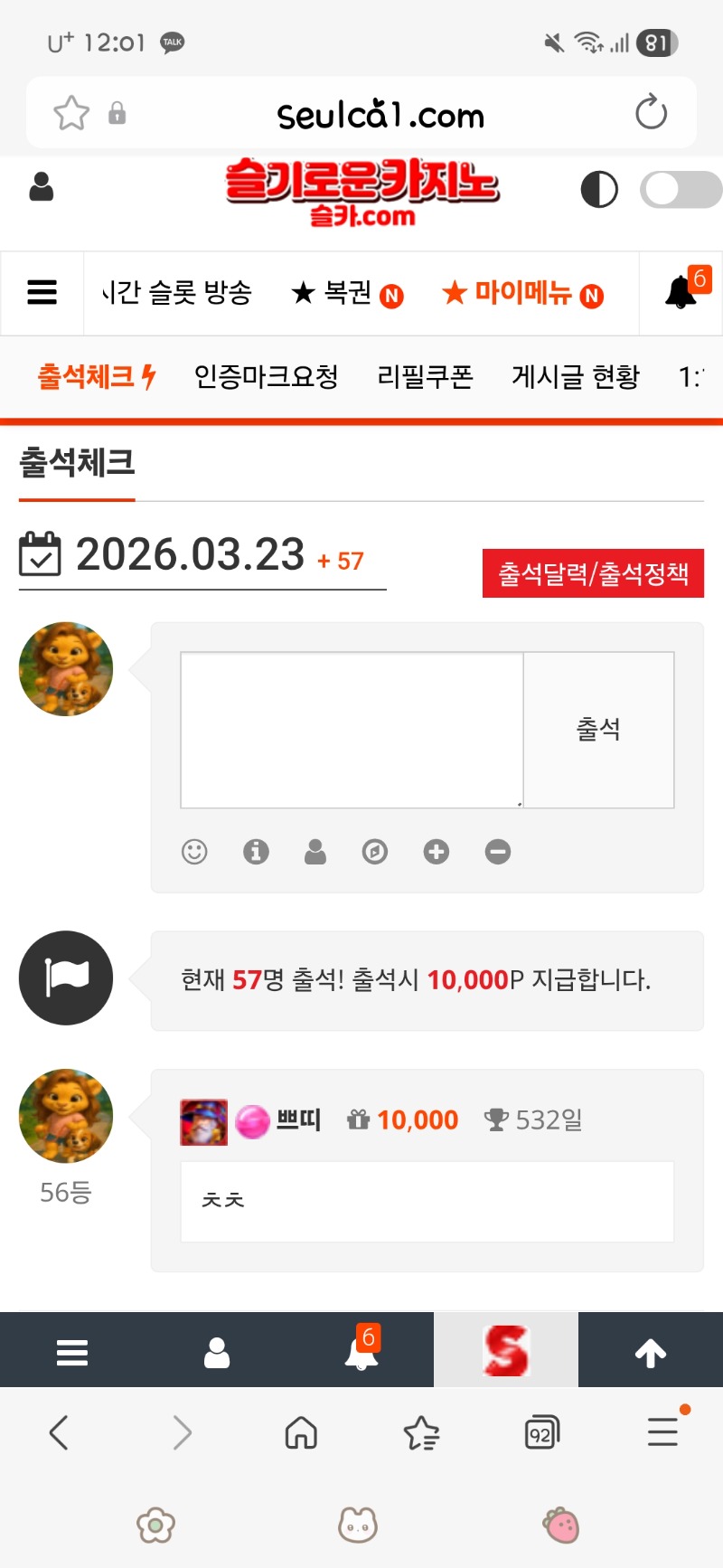 출첵 쁘띠 0 0 0 00:02:13 *기프티콘 바코드 노출 주의* <- 0 0 https://seulca1.com/bbs/board.php?bo_table=free&wr_id=3713497 Author 16 4 Lv.17 쁘띠 17 78,435,779 (28%) 쁘띠님 보유 포인트 : P 1,562,756 03.23 첫복권 꽝 03.23 출첵 +17 03.22 울애기~~~냠냠이사러~~~ +6 03.22 쌍복~~!!! +24 03.22 일복~드디어 1등