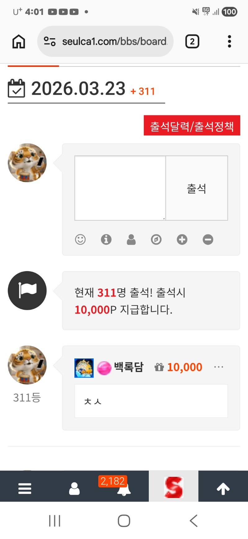 출석합니다 백록담 0 0 0 04:03:29 *기프티콘 바코드 노출 주의* <- 0 0 https://seulca1.com/bbs/board.php?bo_table=free&wr_id=3713949 Author 0 0 Lv.11 백록담 11 12,433,324 (81%) 백록담님 보유 포인트 : P 73,217 03.23 출석합니다 +1 03.22 [비밀글] 포교신청합니다. +5 03.22 연속일복당첨 +3 03.22 굿모닝입니다 +12 03.22 일복3등.
