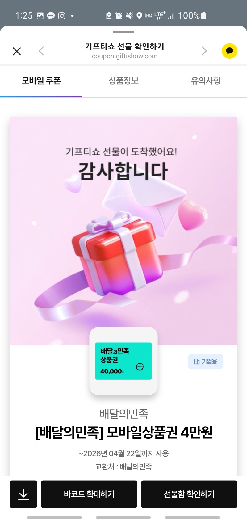 *기프티콘 바코드 노출 주의*