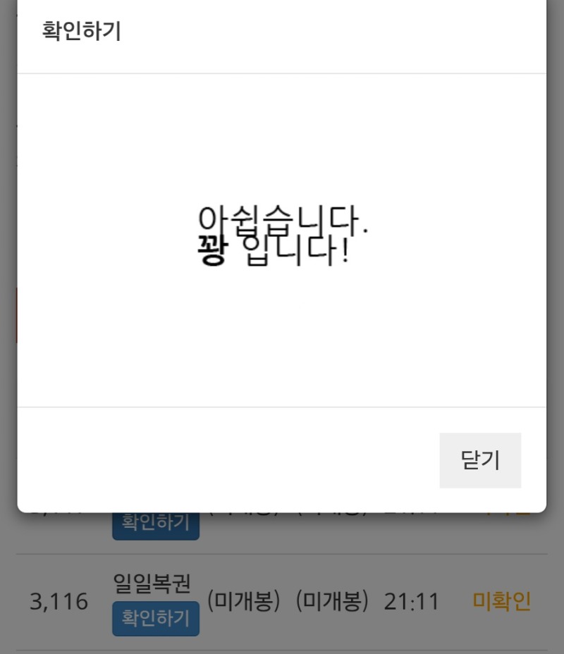 주복이 왓지만 꽝ㅠ 검은돌고래 1 0 0 21:12:39 *기프티콘 바코드 노출 주의* <- ㅠㅠ 0 0 https://seulca1.com/bbs/board.php?bo_table=free&wr_id=3716505 Author 8 5 Lv.18 검은돌고래 18 156,026,537 (93%) 검은돌고래님 보유 포인트 : P 344,478 +1 03.23 주복이 왓지만 꽝ㅠ +9 03.23 포교 성공했네요~~^^ +2 03.23 맛저하세요 +3 03.23 우루스포교 들어왔네요 +3 03.23 활동포 감사합니다 ^^
