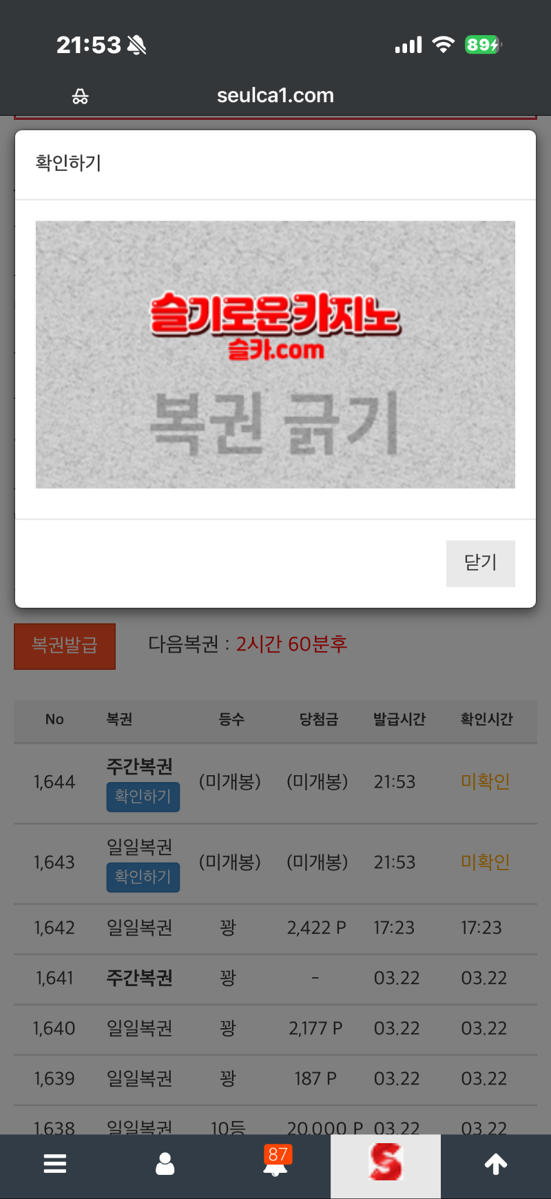 쌍복이닷!!! 나르봉 2 0 0 21:54:17 *기프티콘 바코드 노출 주의* <- 과연~~ 0 0 https://seulca1.com/bbs/board.php?bo_table=free&wr_id=3716636 Author 8 1 Lv.12 나르봉 12 16,727,778 (74%) 나르봉님 보유 포인트 : P 298,970 +2 03.23 쌍복이닷!!! +9 03.23 뱅커 3:0 승 +22 03.23 플레이어 네추럴 9점으로 승 +1 03.21 [비밀글] 배민쿠폰 교환 +31 03.17 레부 마감이요