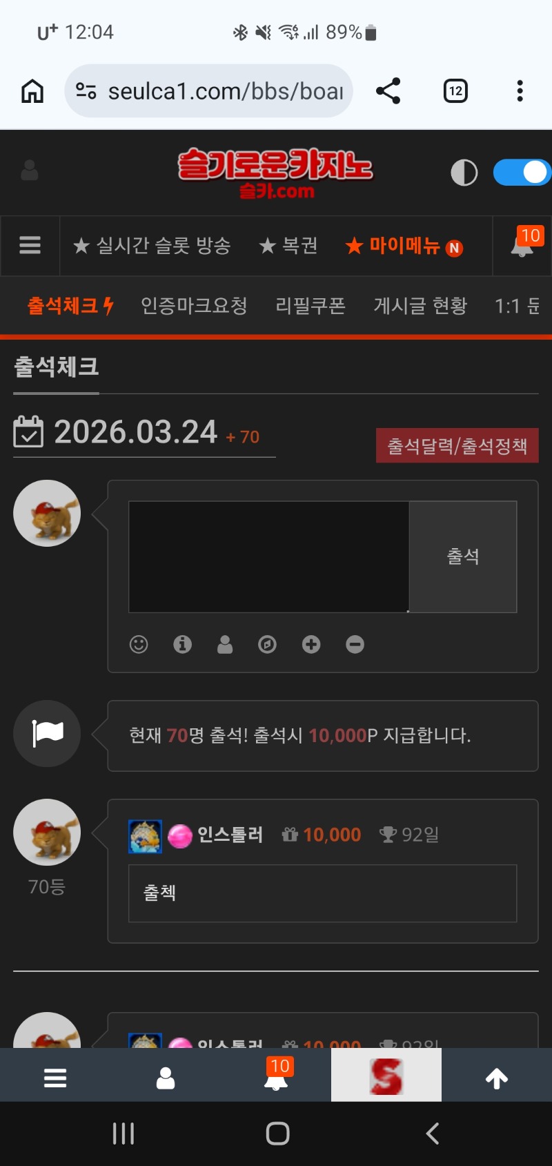 오늘도출첵으로시작 인스톨러 0 0 0 00:05:31 *기프티콘 바코드 노출 주의* <- 만근갓짜 다들출첵하세유 0 0 https://seulca1.com/bbs/board.php?bo_table=free&wr_id=3716845 Author 1 0 Lv.12 인스톨러 12 13,005,381 (0%) 인스톨러님 보유 포인트 : P 131,865 +4 03.24 퓨리보난자 바닥진입 186배 +1 03.24 드뎌 레업 두꺼비다ㅋㅋ +2 03.24 슈천109배 +3 03.24 슈천201배 +2 03.24 사무메233배