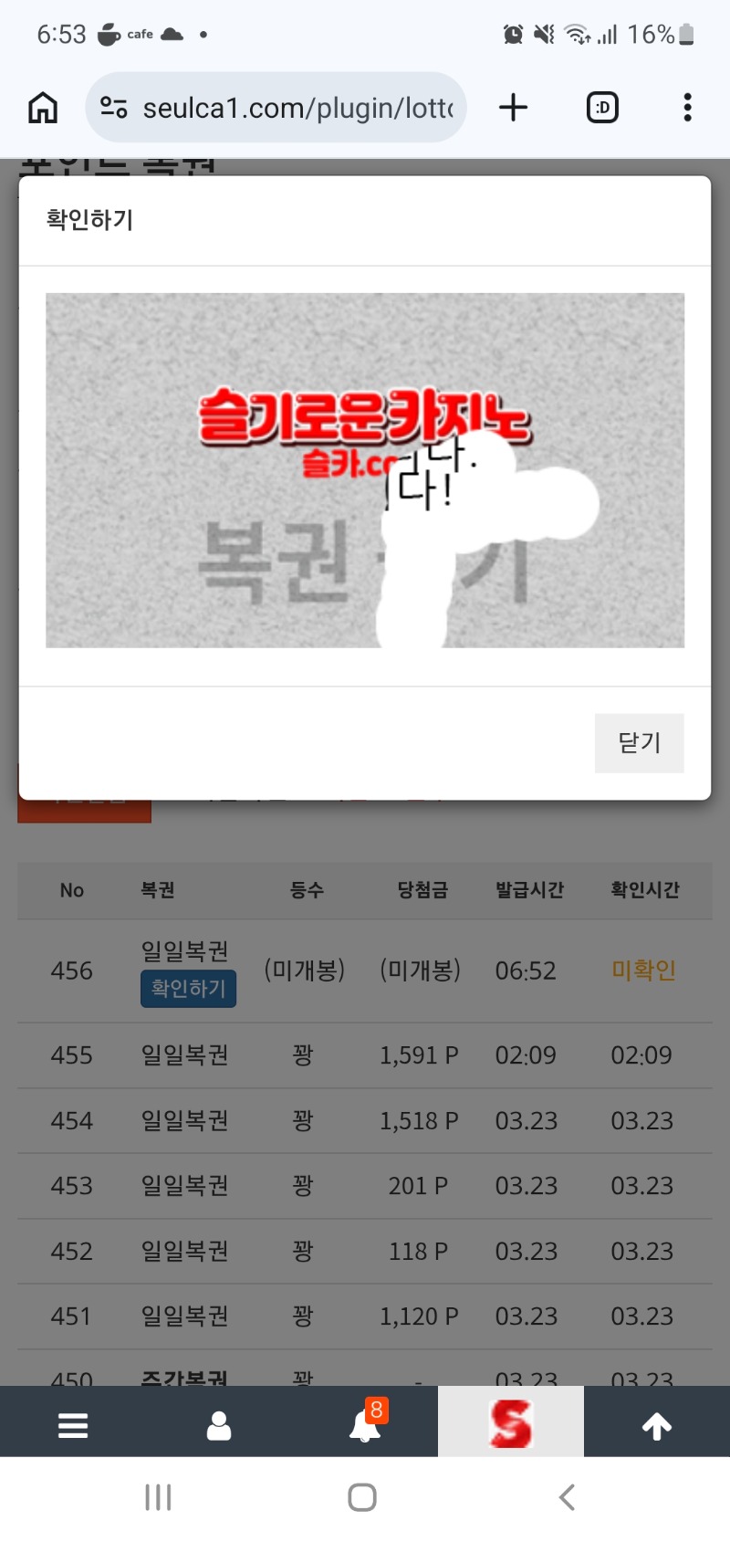아침 복이췍! 무조건한방가자 0 0 0 06:53:46 *기프티콘 바코드 노출 주의* <- 역시나! 0 0 https://seulca1.com/bbs/board.php?bo_table=free&wr_id=3717339 Author 0 0 Lv.8 무조건한방가자 8 3,615,056 (61%) 무조건한방가자님 보유 포인트 : P 228,716 03.24 아침 복이췍! +8 03.24 시안 7연승.. +1 03.24 아..문에서 연패이벤트를 +9 03.23 문 퍼펙페어.. +1 03.23 막복췍..