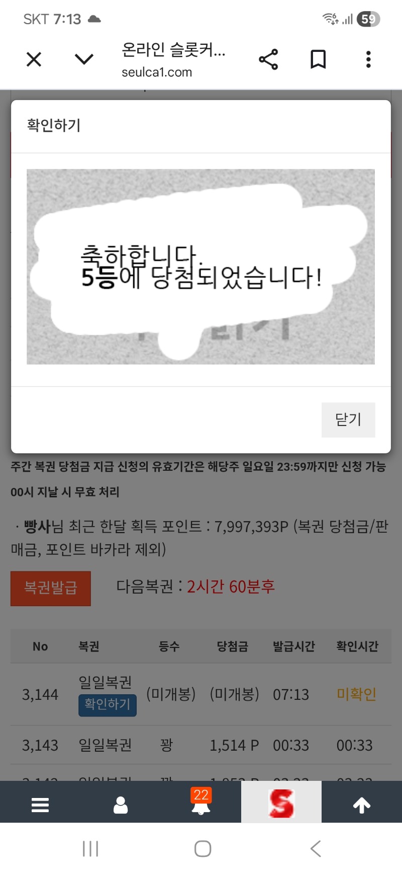 모닝 일복 5등 당첨 ㅅ 빵사 3 0 0 07:16:44 *기프티콘 바코드 노출 주의* <- 0 0 https://seulca1.com/bbs/board.php?bo_table=free&wr_id=3717370 Author 3 0 Lv.17 빵사 17 80,264,713 (34%) 빵사님 보유 포인트 : P 0 +1 03.24 이침부터 불러보는 그이름... 이모~ +1 03.24 출근길 포인트 정말 오랜만이네요^^ +3 03.24 모닝 일복 5등 당첨 ㅅ 03.24 자기전에 다 버리고 가는게 맞지? +6 03.24 플 3연승..ㅡ.ㅡ