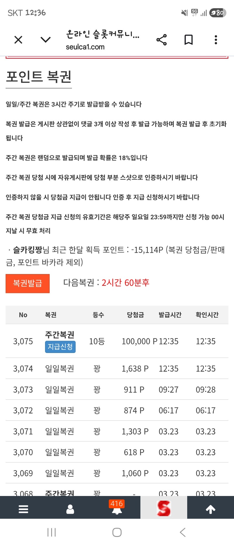 주복 10등 와~~~~ 슬카킹짱 7 0 0 12:36:45 *기프티콘 바코드 노출 주의* <- 0 0 https://seulca1.com/bbs/board.php?bo_table=free&wr_id=3718098 Author 1 1 Lv.12 슬카킹짱 12 15,897,836 (57%) 슬카킹짱님 보유 포인트 : P 71,855 +7 03.24 주복 10등 와~~~~ +17 03.23 100꽝 선물 bj쿠폰 9장 감사합니다~~~ +3 03.23 복권 101꽝ㅋㅋ +5 03.23 100꽝 이벤트 아직하는건가용?ㅋ +1 03.22 [비밀글] 포교신청