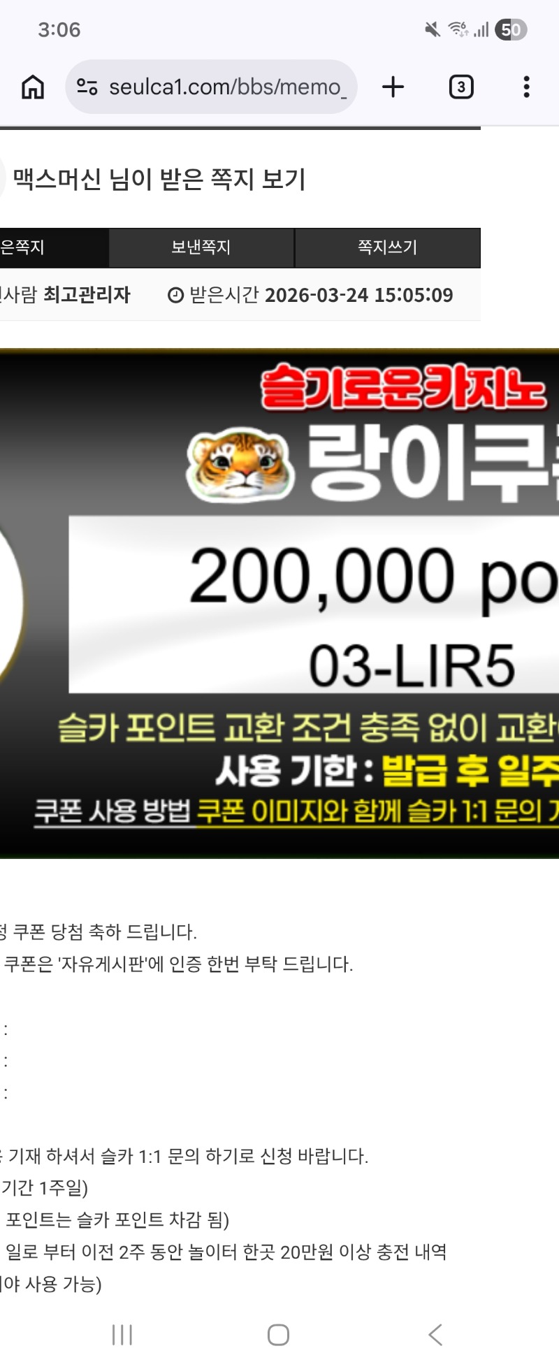 랑이님 추겜성공 ㅅㅅㅅ 맥스머신 5 0 0 15:25:58 *기프티콘 바코드 노출 주의* <- 랑이님 감사하게 잘쓸께요 ㅅㅅㅅㅅㅅㅅ 0 0 https://seulca1.com/bbs/board.php?bo_table=free&wr_id=3718320 Author 0 0 Lv.5 맥스머신 5 930,029 (88%) 맥스머신님 보유 포인트 : P 1,296,631 +1 03.24 [비밀글] 쿠폰교환신청합니다 +5 03.24 랑이님 추겜성공 ㅅㅅㅅ +2 03.24 점심 맛있게드세요 +1 03.24 6렙가는길이 쉽지않네요ㅎㅎ +16 03.23 바카라소액 뒷발샷
