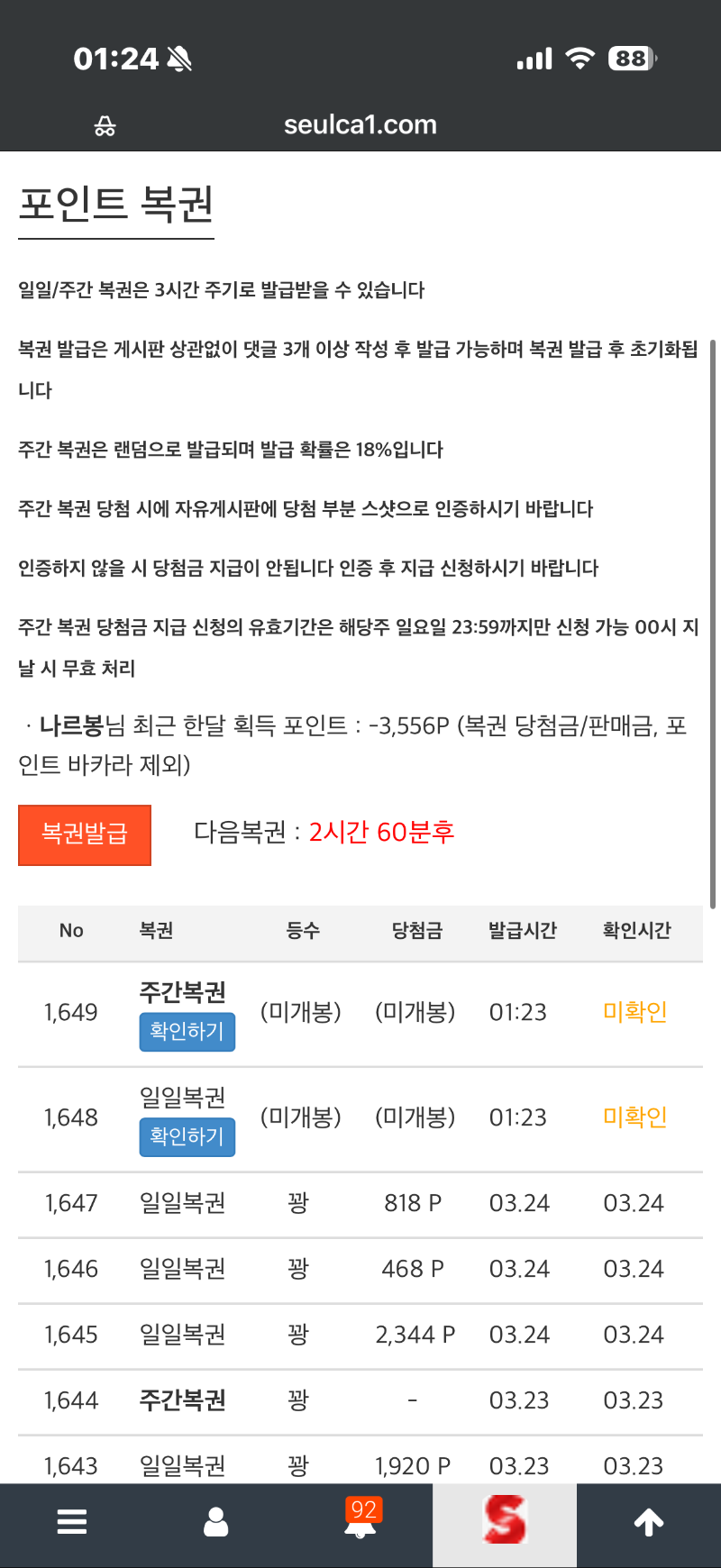 쌍복이다~~ 나르봉 0 0 0 01:24:59 *기프티콘 바코드 노출 주의* <- 과연~~? 0 0 https://seulca1.com/bbs/board.php?bo_table=free&wr_id=3719861 Author 8 1 Lv.12 나르봉 12 16,800,236 (76%) 나르봉님 보유 포인트 : P 172,486 +3 03.25 딱!!2판으로 일당 끝~~~ +2 03.25 히든카드 7깔리면서 9:8 플레이어 승 +2 03.25 뱅커 네추럴 9점으로 승 03.25 역시 쌍복이 꽝!꽝!이내 ㅠㅠ 03.25 쌍복이다~~