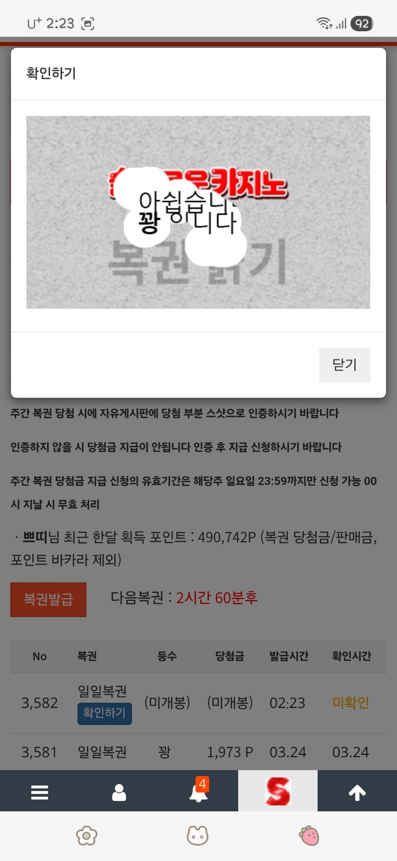 첫복권 꽝 쁘띠 0 0 0 02:41:54 *기프티콘 바코드 노출 주의* <- 0 0 https://seulca1.com/bbs/board.php?bo_table=free&wr_id=3719921 Author 16 4 Lv.17 쁘띠 17 78,578,573 (28%) 쁘띠님 보유 포인트 : P 2,039,210 +3 03.25 미형 사자승~!!!나아따 03.25 첫복권 꽝 03.25 출첵 03.24 저녁 복권 꽝 +3 03.24 오후 복권 꽝