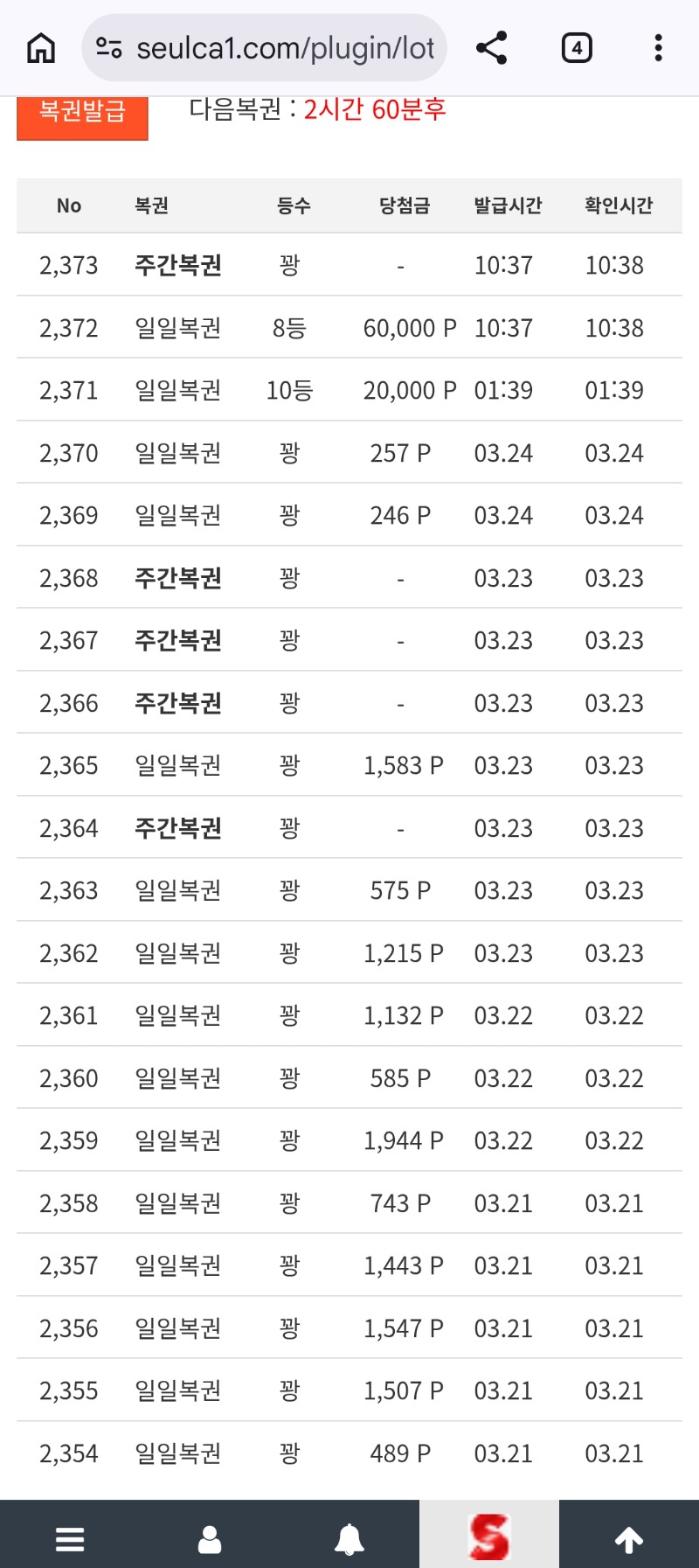 일복 8등 에어팡 4 0 0 10:39:26 *기프티콘 바코드 노출 주의* <- 연속?ㅎㅎ 0 0 https://seulca1.com/bbs/board.php?bo_table=free&wr_id=3720694 Author 4 4 Lv.14 에어팡 14 23,224,484 (3%) 에어팡님 보유 포인트 : P 437,881 +4 03.25 일복 8등 +6 03.25 슈슈 422배 +7 03.25 슈슈 579배 +2 03.25 일복 10등 03.25 출석해요