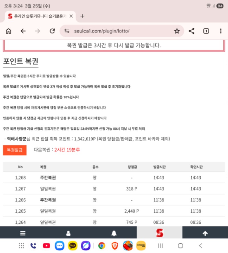 어쩐일로 연타로 주복을 역배사랑꾼 7 0 0 15:25:23 *기프티콘 바코드 노출 주의* <- 꽝이라는게 문제네 0 0 https://seulca1.com/bbs/board.php?bo_table=free&wr_id=3721358 Author 3 0 Lv.11 역배사랑꾼 11 10,428,327 (14%) 역배사랑꾼님 보유 포인트 : P 219,458 +7 03.25 어쩐일로 연타로 주복을 +1 03.25 나른한 오후네요 +4 03.25 오라메 5000 +42 03.25 오라메 맥스 +15 03.25 토라메 548