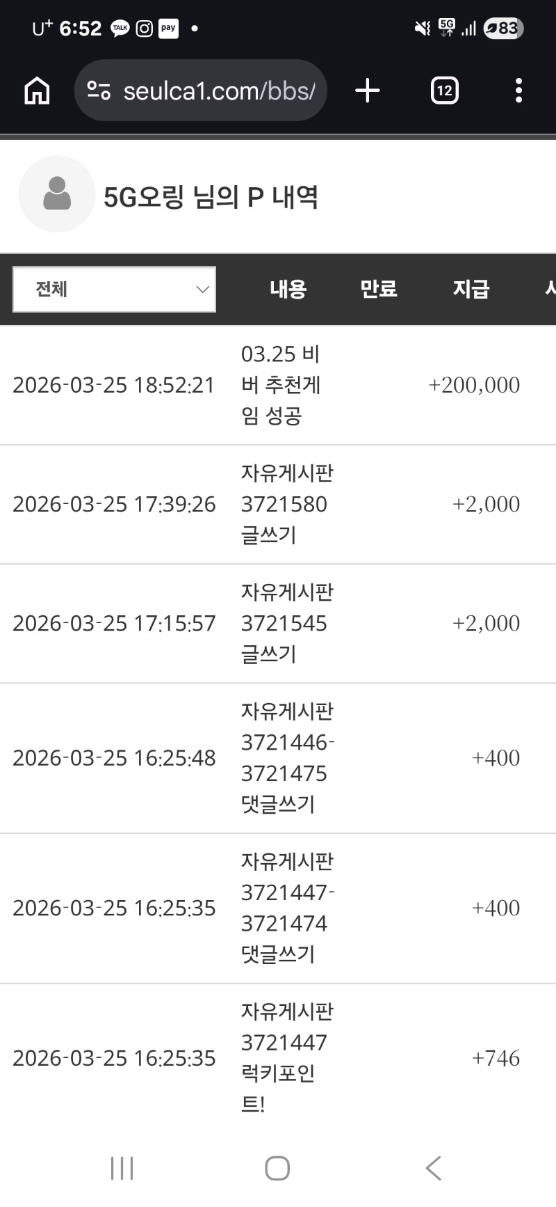 비버님 추겜당첨 5G오링 3 0 0 18:53:05 *기프티콘 바코드 노출 주의* <- 감사합니다 0 0 https://seulca1.com/bbs/board.php?bo_table=free&wr_id=3721780 Author 3 0 Lv.13 5G오링 13 20,712,222 (54%) 5G오링님 보유 포인트 : P 1,466,552 03.25 저녁복권꽝 +3 03.25 비버님 추겜당첨 +1 03.25 맛저하세여 +1 03.25 오늘도 고생하셨어요 +2 03.25 물개님 추겜성공
