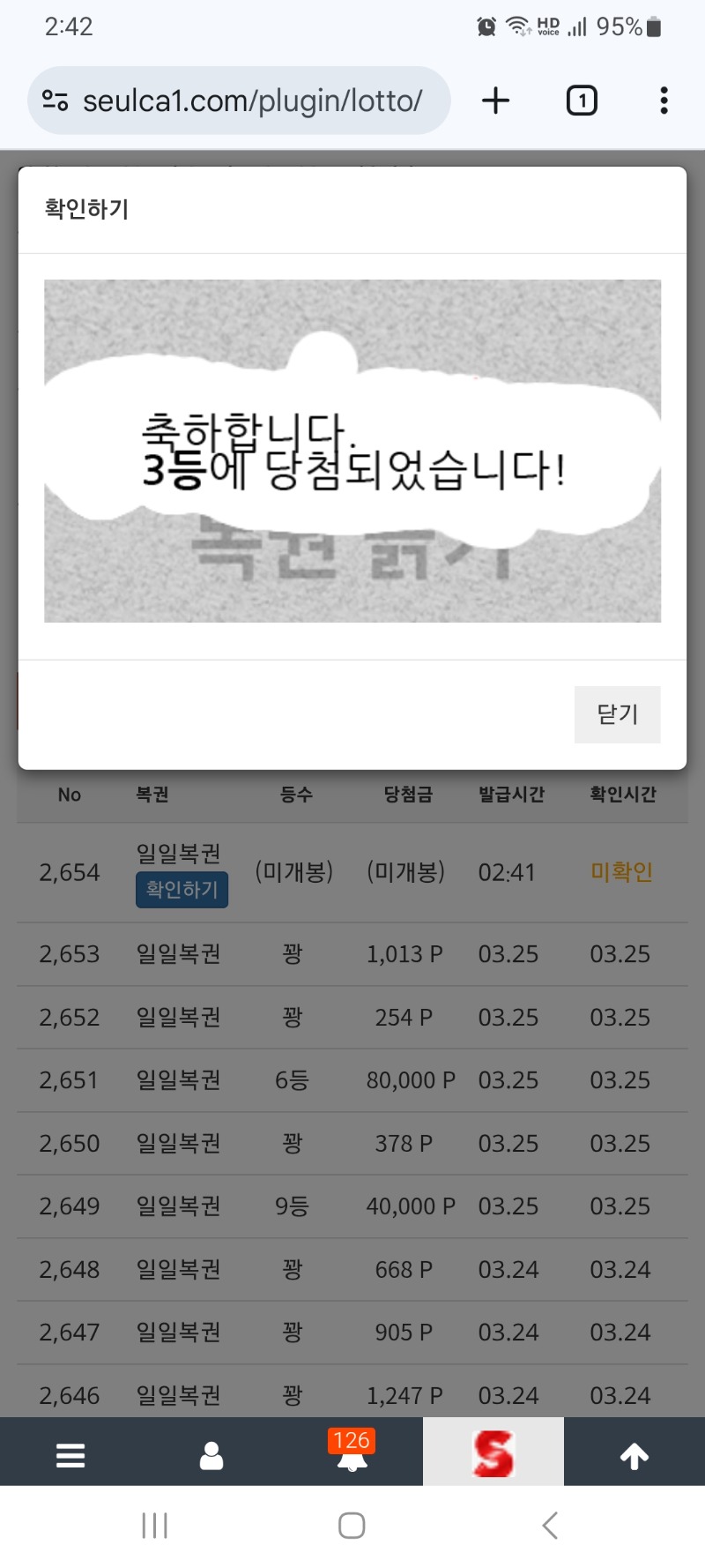 일복 3등~ 이실로테2 4 1 0 02:45:16 *기프티콘 바코드 노출 주의* <- 10등만 나오던 저주가 풀린듯하네요ㅎㅎ 3등 감사감사~ 1 0 https://seulca1.com/bbs/board.php?bo_table=free&wr_id=3722568 Author 2 2 Lv.13 이실로테2 13 18,237,472 (4%) 이실로테2님 보유 포인트 : P 617,536 +4 03.26 일복 3등~ 03.25 맛저하세요~ +4 03.25 일복 6등~ +2 03.25 잠들기전 일복 9등. 03.23 리필이모~