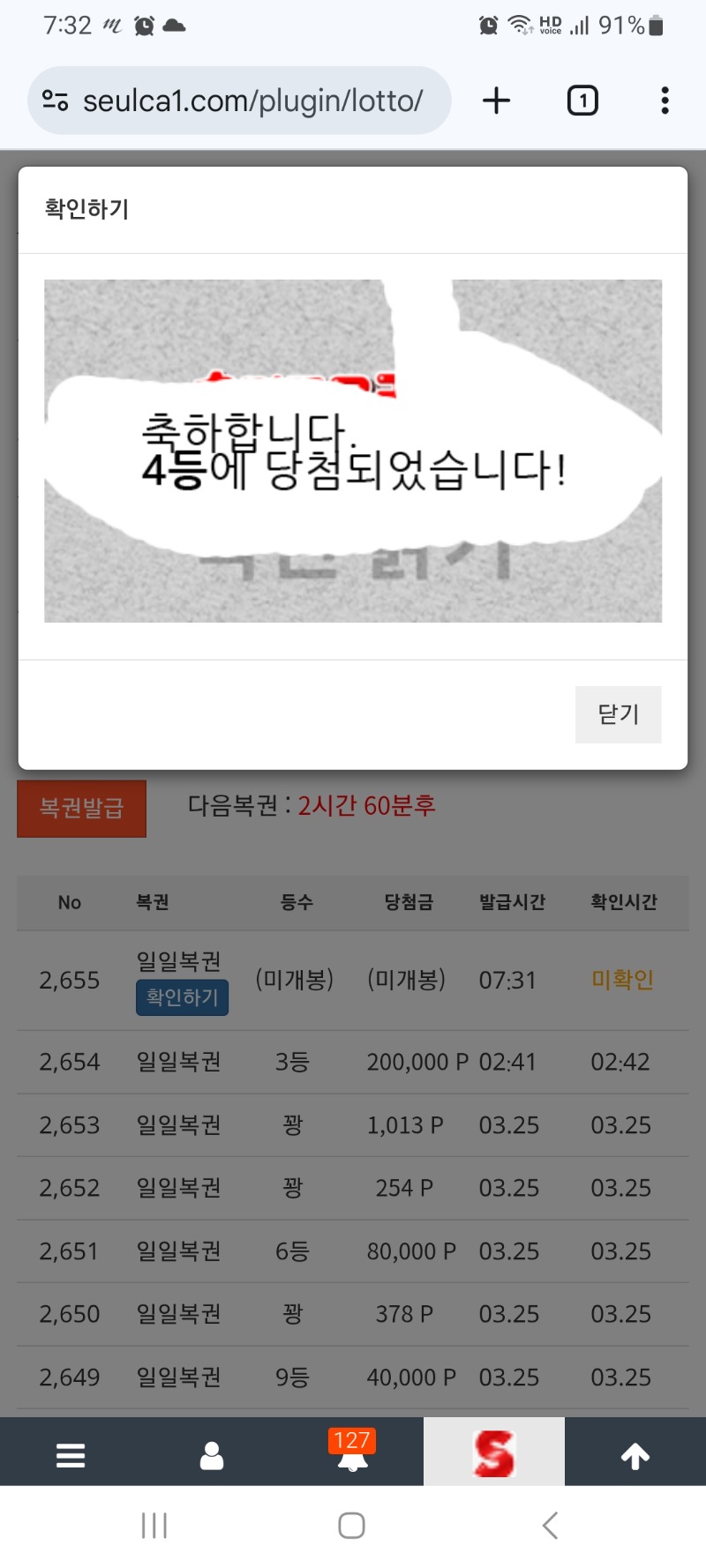 출근길 일복 4등 당첨~ 이실로테2 5 0 0 07:34:37 *기프티콘 바코드 노출 주의* <- 자기전에 3등 당첨이라 기대없이 깐건데 4등. 기분좋게 출근합니다~ 0 0 https://seulca1.com/bbs/board.php?bo_table=free&wr_id=3722863 Author 2 2 Lv.13 이실로테2 13 18,240,972 (4%) 이실로테2님 보유 포인트 : P 821,036 +5 03.26 출근길 일복 4등 당첨~ +8 03.26 일복 3등~ 03.25 맛저하세요~ +4 03.25 일복 6등~ +2 03.25 잠들기전 일복 9등.