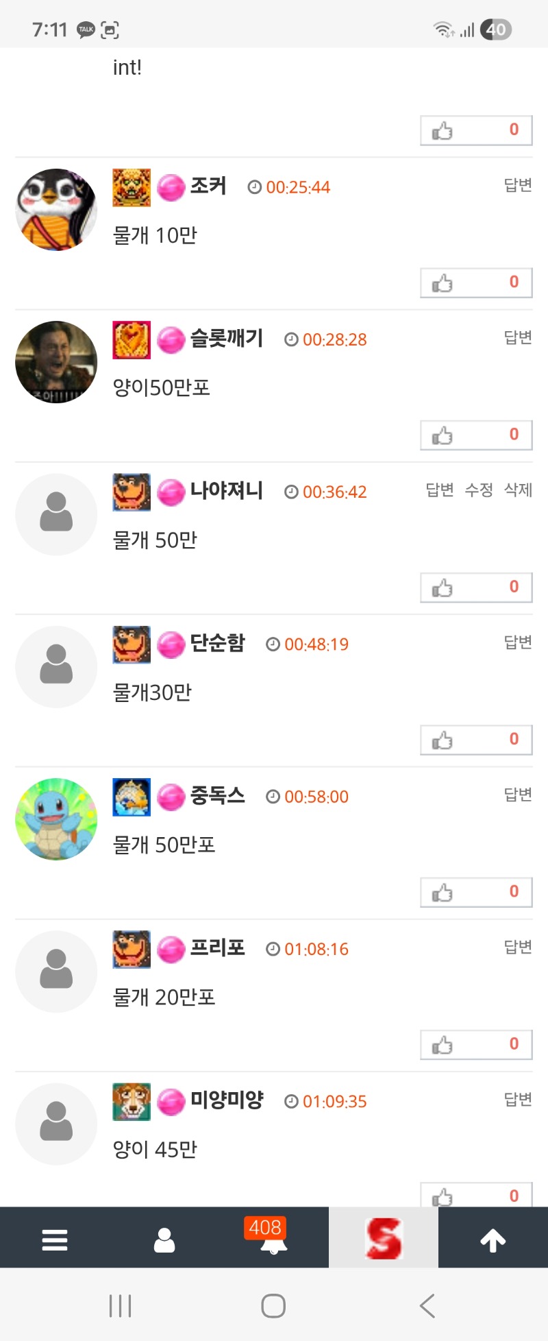 물개형 댓글럭포는 나가리~..