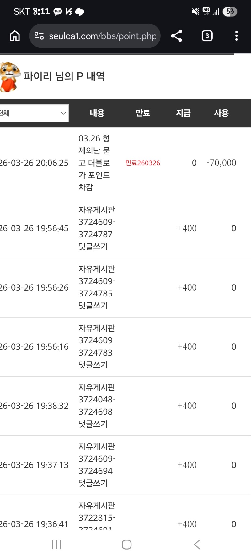 형난포 차감 !! 파이리 0 0 0 20:11:43 *기프티콘 바코드 노출 주의* <- 0 0 https://seulca1.com/bbs/board.php?bo_table=free&wr_id=3724834 Author 3 1 Lv.13 파이리 13 18,271,514 (5%) 파이리님 보유 포인트 : P 4,891 03.26 형난포 차감 !! +15 03.26 물개야 전재산 6만포갔다.. 이겨보자!!! +2 03.26 양이형 럭포.. 꼭 마감되고 ㅡㅡ 03.26 이모~ +4 03.26 시안 형난이벤 참여