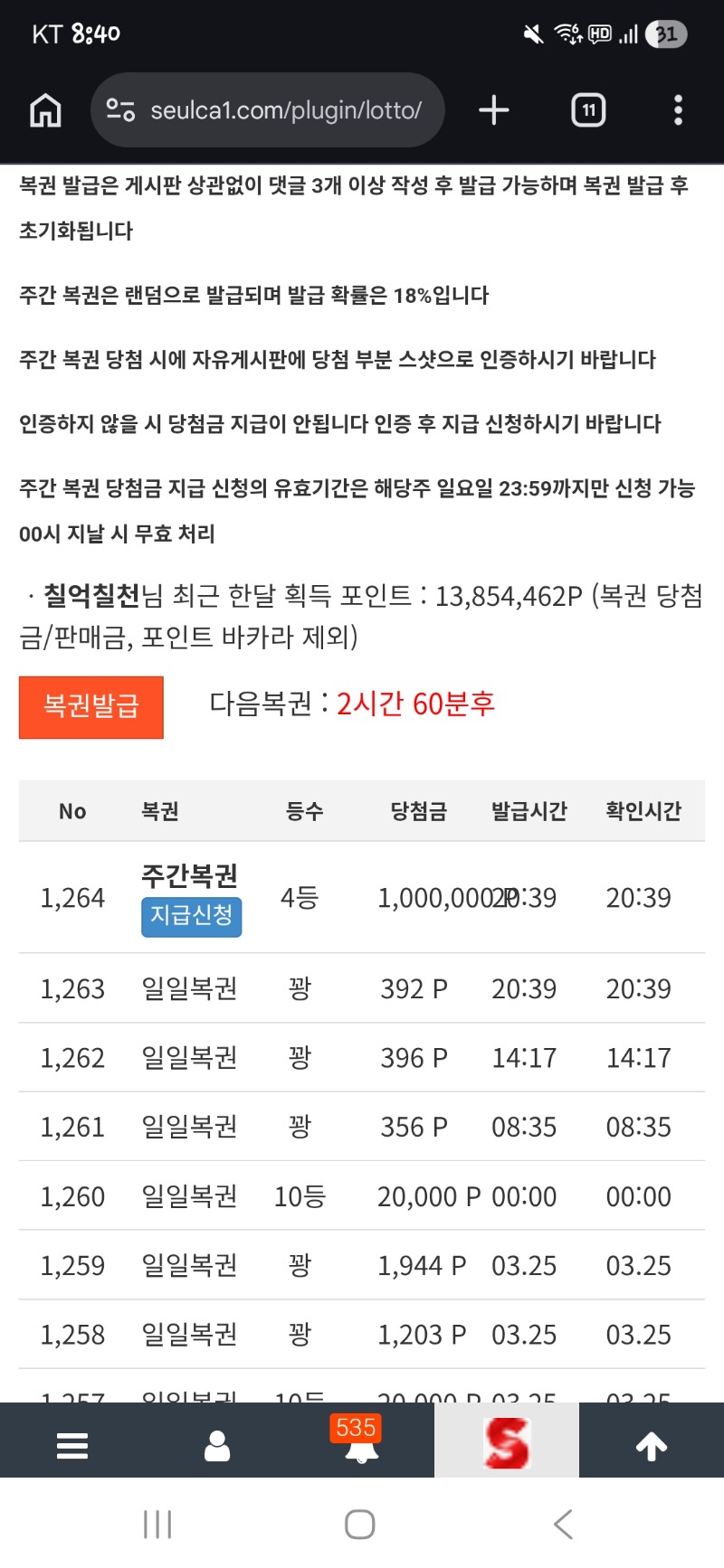주복 4등 당첨! 칠억칠천 11 0 0 20:40:34 *기프티콘 바코드 노출 주의* <- 0 0 https://seulca1.com/bbs/board.php?bo_table=free&wr_id=3724917 Author 9 2 Lv.12 칠억칠천 12 16,704,384 (74%) 칠억칠천님 보유 포인트 : P 11,444 +2 03.26 물개승 나이스 양이도 고생했다 +11 03.26 주복 4등 당첨! 03.26 일찍와주길바래 시안호팀장님! +2 03.26 일복10등 +1 03.25 배쿱 교환!