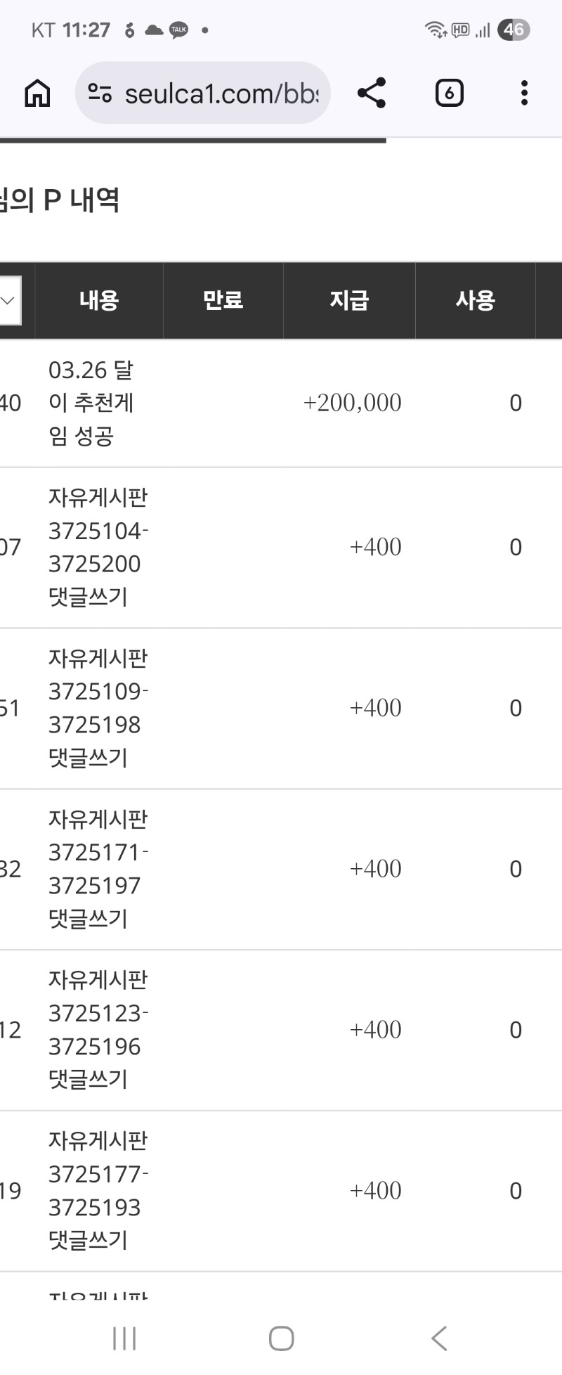 달달이 추겜 당첨 포인트 고마워용 ~~ 강아지 2 0 0 03.26 23:28 *기프티콘 바코드 노출 주의* <- 0 0 https://seulca1.com/bbs/board.php?bo_table=free&wr_id=3725224 Author 0 0 Lv.14 강아지 14 26,406,132 (48%) 강아지님 보유 포인트 : P 6,224,224 +2 03.26 달달이 추겜 당첨 포인트 고마워용 ~~ +4 03.26 양이.물개 고생하셨습니다 ~~~~ +8 03.26 양이 럭포 당첨포 ㅅㅅㅅㅅㅅㅅ +6 03.26 양이 럭포 댓글 이벤트당청 커피요^^^ +6 03.26 호넷 배민돌발 새벽에 죽다 살아남~~~~