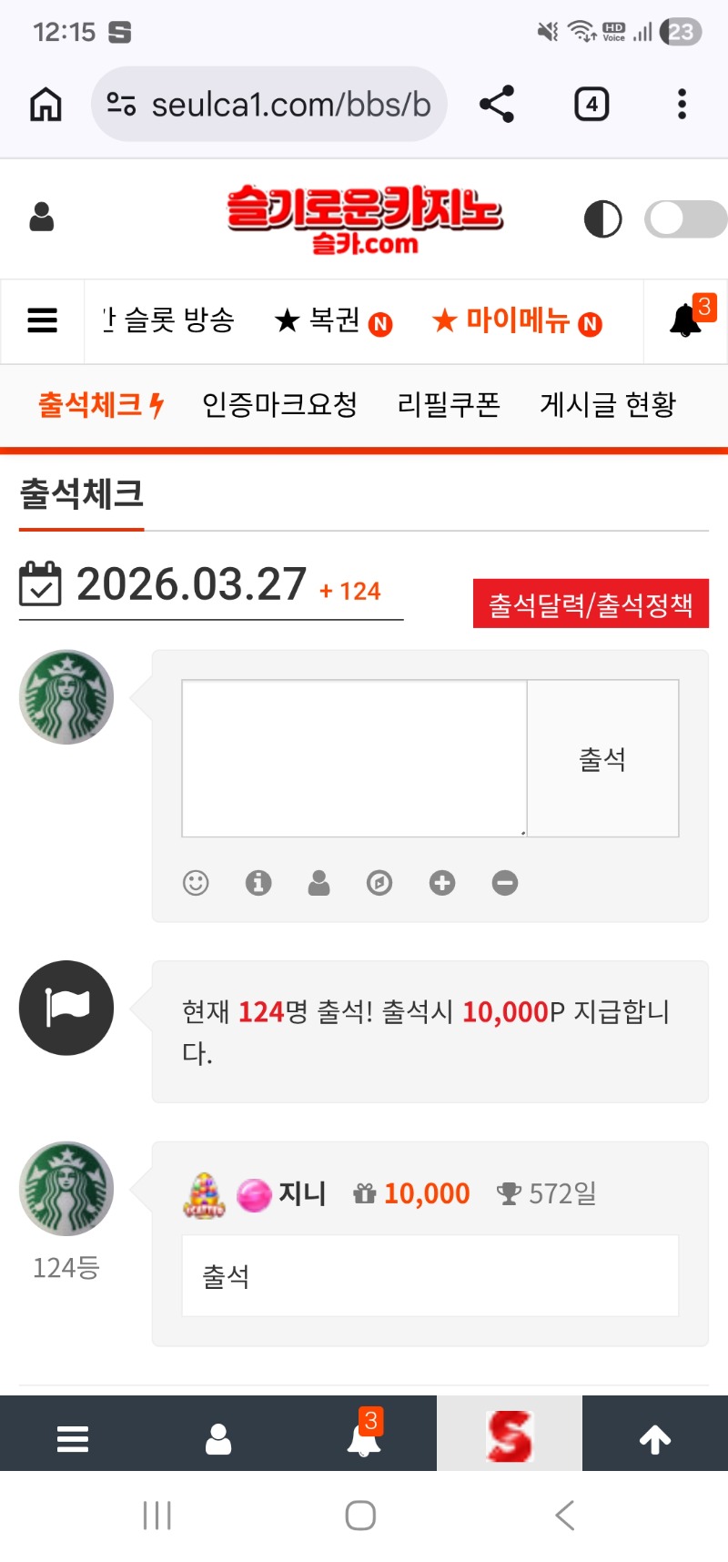 출첵 지니 0 0 0 00:15:27 *기프티콘 바코드 노출 주의* <- 0 0 https://seulca1.com/bbs/board.php?bo_table=free&wr_id=3725310 Author 5 2 Lv.16 지니 16 57,972,363 (39%) 지니님 보유 포인트 : P 32,341 03.27 출첵 +3 03.26 리필보상 완료 03.26 출첵 +1 03.25 리필 주세요 03.25 출첵