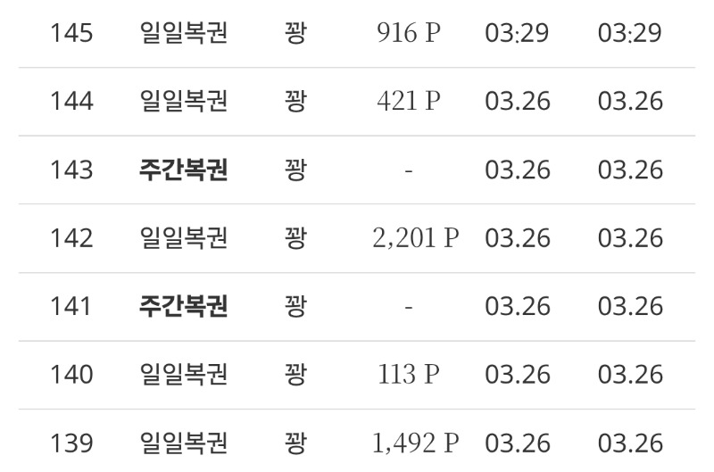 연꽝도전~! 진진자라 3 0 0 05:15:17 *기프티콘 바코드 노출 주의* <- 2일차 ㅎㅎ... 0 0 https://seulca1.com/bbs/board.php?bo_table=free&wr_id=3725708 Author 1 0 Lv.9 진진자라 9 4,950,817 (23%) 진진자라님 보유 포인트 : P 479,564 +3 03.27 연꽝도전~! +4 03.27 휴 깡치기 성공. +1 03.26 만근가햐~~~ +1 03.26 모닝이모.. +3 03.25 맛점하십쇼~~~