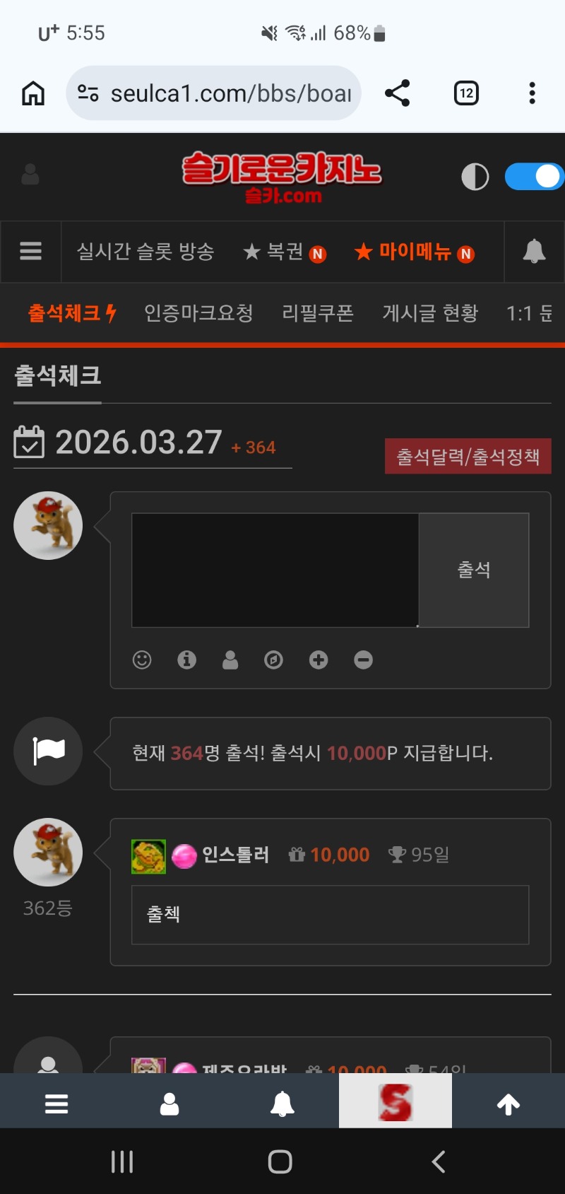 굿모닝 출첵 인스톨러 1 0 0 05:56:26 *기프티콘 바코드 노출 주의* <- 오늘도 출첵 만근까지 얼마안남았네요 다들 만근갓짜 0 0 https://seulca1.com/bbs/board.php?bo_table=free&wr_id=3725753 Author 1 0 Lv.12 인스톨러 12 13,153,903 (3%) 인스톨러님 보유 포인트 : P 2,036,955 +1 03.27 굿모닝 출첵 +21 03.26 본전을주네 어렵다 +20 03.26 오링벳 패 아오ㅠㅠ +20 03.26 에볼 첫판부터 패 +3 03.26 호딱이 배민도착