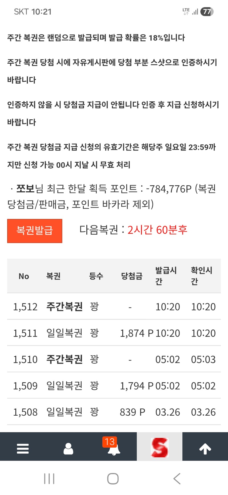 쌍복이 연속으로 쪼보 3 0 0 10:22:41 *기프티콘 바코드 노출 주의* <- 왔지만 연속으로 꽝이네요 0 0 https://seulca1.com/bbs/board.php?bo_table=free&wr_id=3726124 Author 2 0 Lv.10 쪼보 10 9,089,873 (54%) 쪼보님 보유 포인트 : P 643,560 +3 03.27 쌍복이 연속으로 03.27 [비밀글] 주복3등교환 +6 03.27 드디어 주복3등인증및 신청가능 +1 03.26 일도 안돼고 겜도 안돼고 +7 03.26 일복 주복에 이름올림