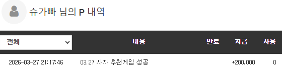사자형아 추겜 나이따 ㅆㅆ 슈가빠 3 0 0 21:19:45 *기프티콘 바코드 노출 주의* <- 포교때매 포인트 매말랐는데 가뭄에단비 ㅅㅅ 0 0 https://seulca1.com/bbs/board.php?bo_table=free&wr_id=3727542 Author 0 0 Lv.9 슈가빠 9 6,298,541 (57%) 슈가빠님 보유 포인트 : P 1,468,106 03.27 목표는 !! +7 03.27 에잇 연패 ㅜ.ㅜ +6 03.27 한끗차 패배.. +6 03.27 첫배팅 뒷발승 +5 03.27 추겜 수익 나이따 ㅆㅆ