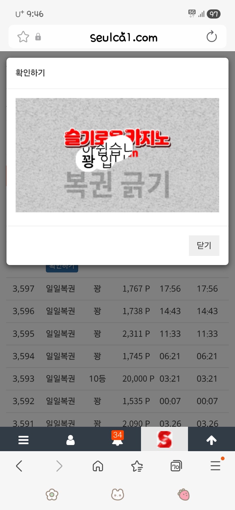 주복 팔껄~~~~에잇~~ 쁘띠 4 0 0 21:46:39 *기프티콘 바코드 노출 주의* <- 0 0 https://seulca1.com/bbs/board.php?bo_table=free&wr_id=3727598 Author 17 4 Lv.17 쁘띠 17 78,992,793 (29%) 쁘띠님 보유 포인트 : P 2,500,209 +4 03.27 주복 팔껄~~~~에잇~~ +3 03.27 마지막 복권 꽝 +14 03.27 300만 포교 할수~~~~있으까 03.27 수익왕~~~ +4 03.27 쌍복 왔다~