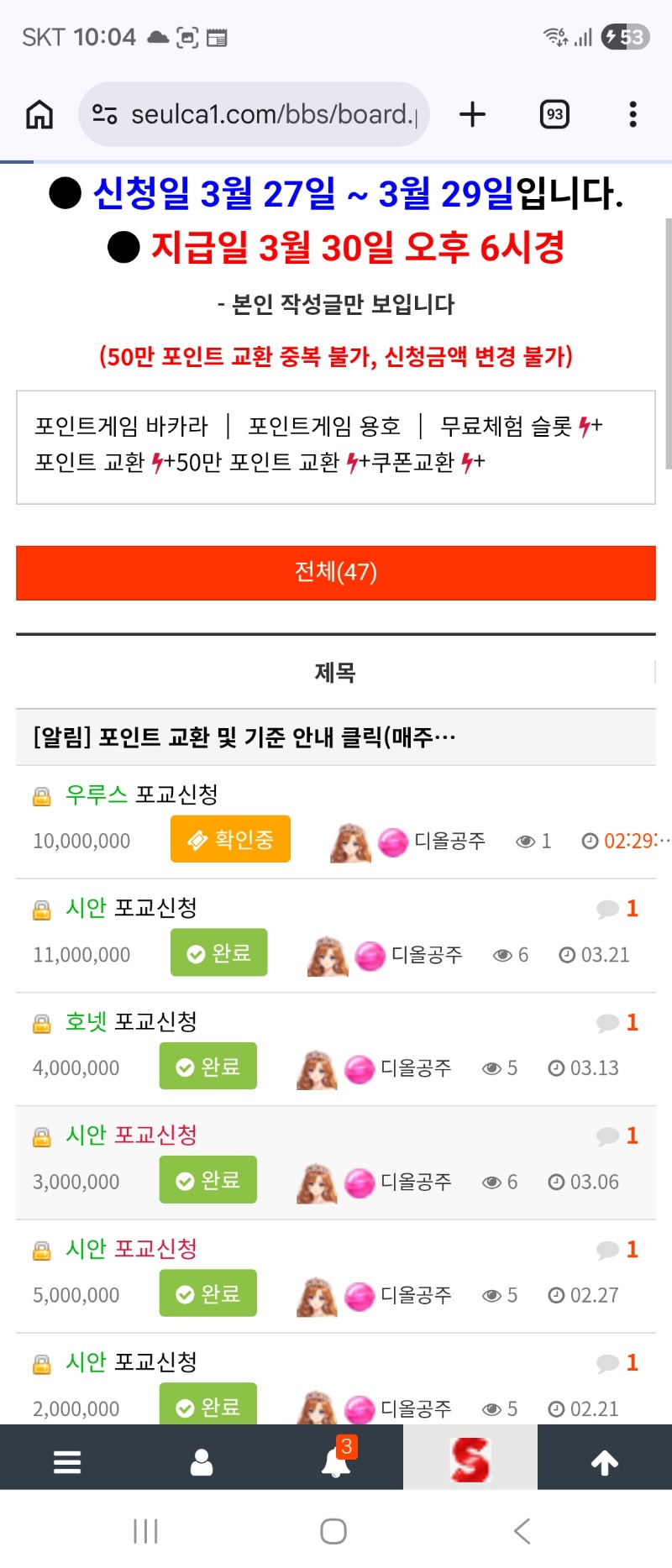 포교신청 이번에도 무사히 디올공주 18 0 0 10:06:17 *기프티콘 바코드 노출 주의* <- 0 0 https://seulca1.com/bbs/board.php?bo_table=free&wr_id=3728818 Author 25 16 Lv.19 디올공주 19 208,315,239 (0%) 디올공주님 보유 포인트 : P 5,700 03.28 멀린 1641배 +23 03.28 신할천 153배*5000냥 바닥한방 +9 03.28 뱅만가 ᆢ방을 이제들어갔네 +6 03.28 난ᆢ왜 맥스 안주낭 +18 03.28 포교신청 이번에도 무사히