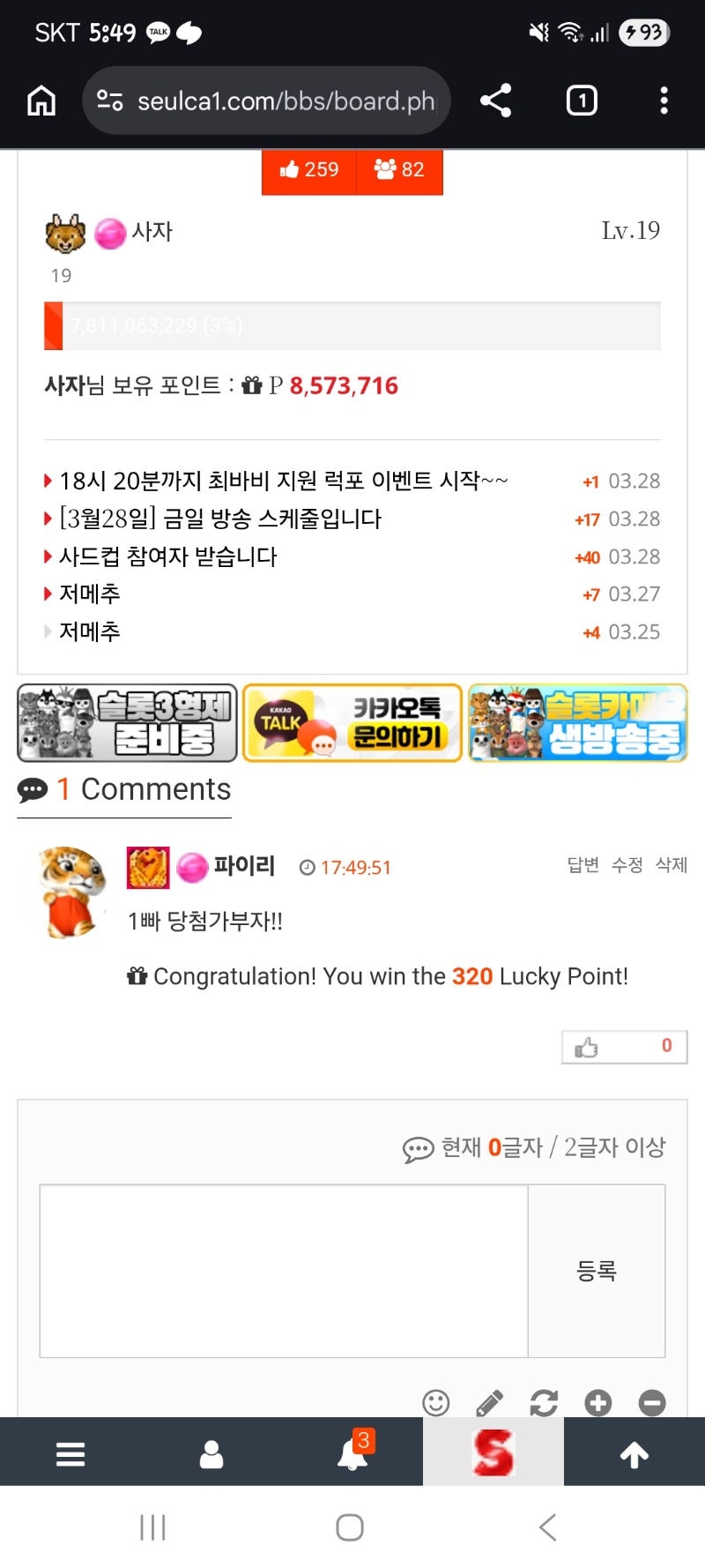 오예 사자 럭포1빠 ㅅㅅ 파이리 2 0 0 17:51:36 *기프티콘 바코드 노출 주의* <- 0 0 https://seulca1.com/bbs/board.php?bo_table=free&wr_id=3729872 Author 3 1 Lv.13 파이리 13 18,401,276 (8%) 파이리님 보유 포인트 : P 2,000 03.28 이모 저왔어요~~ +8 03.28 사자럭포 ㅅㅅ +6 03.28 우오아 일복 9등10등 +2 03.28 오예 사자 럭포1빠 ㅅㅅ +8 03.28 복권 쌓이는중 ㅋㅋ