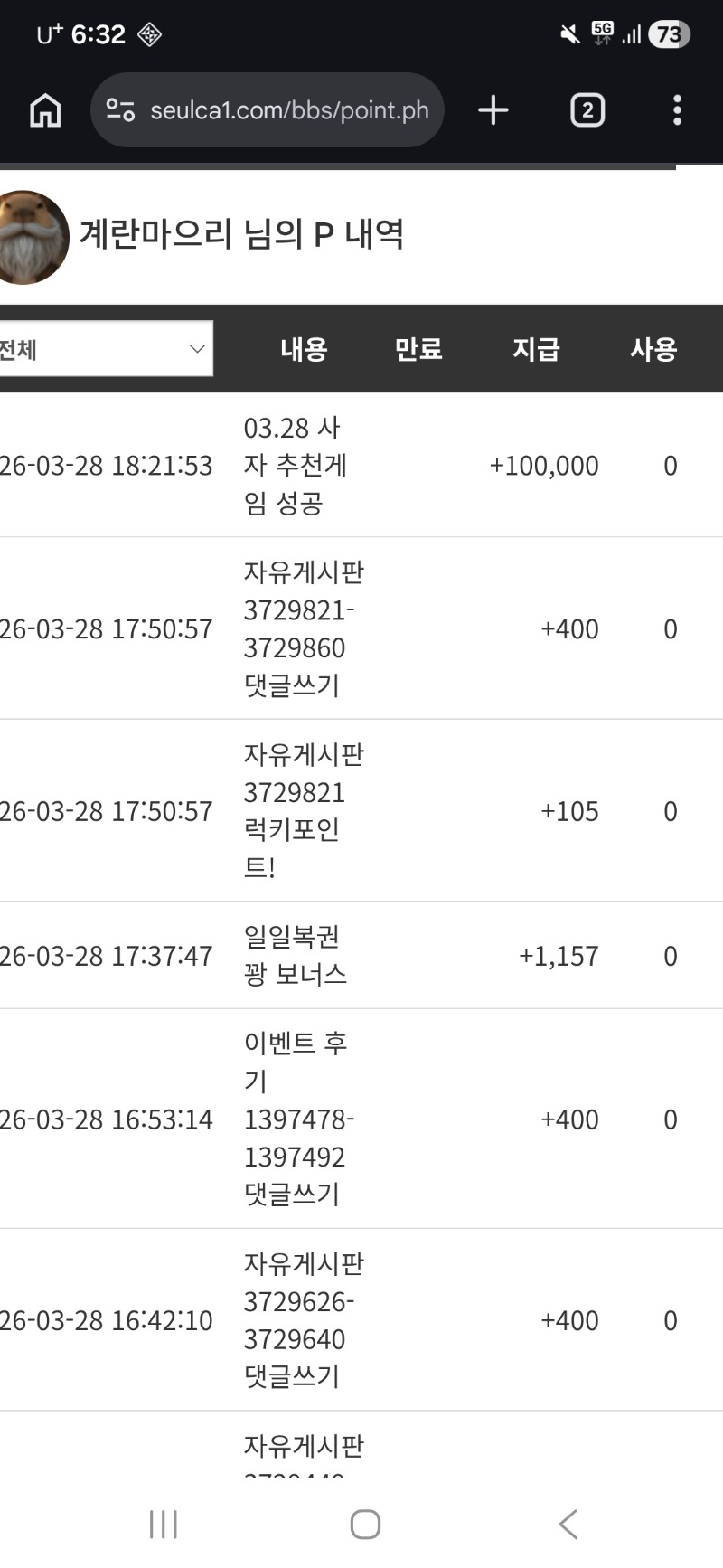 사자럭포♡ 계란마으리 1 0 0 18:32:59 *기프티콘 바코드 노출 주의* <- 웅캬캬캬캬 역시 사자랑 잘맞아 ㅋㅋㅋㅋㅋㅋ 사자짱♡ 300만 포교 가자아아아 0 0 https://seulca1.com/bbs/board.php?bo_table=free&wr_id=3730082 Author 11 5 Lv.15 계란마으리 15 36,905,698 (34%) 계란마으리님 보유 포인트 : P 2,048,931 03.28 비버오빠 추겜 당춤! +1 03.28 사자럭포♡ +7 03.28 비버오빠 겜블 뿌러졋을때 +6 03.28 김볶 3일째... +4 03.28 얼음낚시 ㅋㅋㅋ