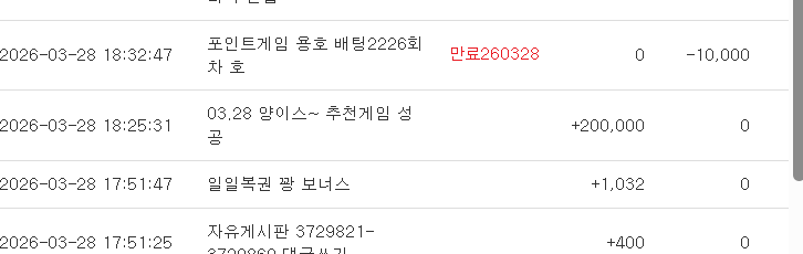 양이가 챙겨준 핀볼당첨 뽀인트 인계동개작두 2 0 0 18:48:05 *기프티콘 바코드 노출 주의* <- 감사합니다 하지만 깡치기 실패 용호야 제발~~ 0 0 https://seulca1.com/bbs/board.php?bo_table=free&wr_id=3730142 Author 4 0 Lv.15 인계동개작두 15 33,189,345 (15%) 인계동개작두님 보유 포인트 : P 4,000 +2 03.28 양이가 챙겨준 핀볼당첨 뽀인트 +1 03.28 맛점하세요 오늘도 화이팅입니다 +9 03.28 연타 일복 5등 당첨 +27 03.28 모닝 바카라 뱅커로 승 6 대 8 뒷발 나이스~ +27 03.28 모닝 바카라 뱅커 승 7 대 9 뒷달 좋았당ㅇ