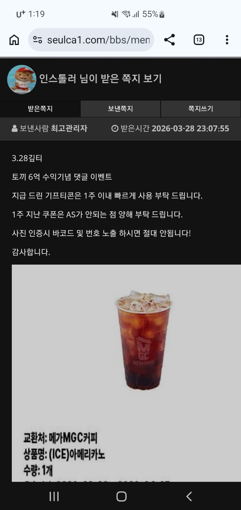 토끼 수익기념커피 ㅅㅅㅅ 인스톨러 1 0 0 06:47:04 *기프티콘 바코드 노출 주의* <- 잘마실께유 다들 오늘도 화이팅입니다 0 0 https://seulca1.com/bbs/board.php?bo_table=free&wr_id=3731357 Author 1 0 Lv.12 인스톨러 12 13,193,878 (3%) 인스톨러님 보유 포인트 : P 77,766 +1 03.29 토끼 수익기념커피 ㅅㅅㅅ +12 03.29 롤링왕 종료 +1 03.27 [비밀글] 포교신청 +1 03.27 굿모닝 출첵 +27 03.26 본전을주네 어렵다