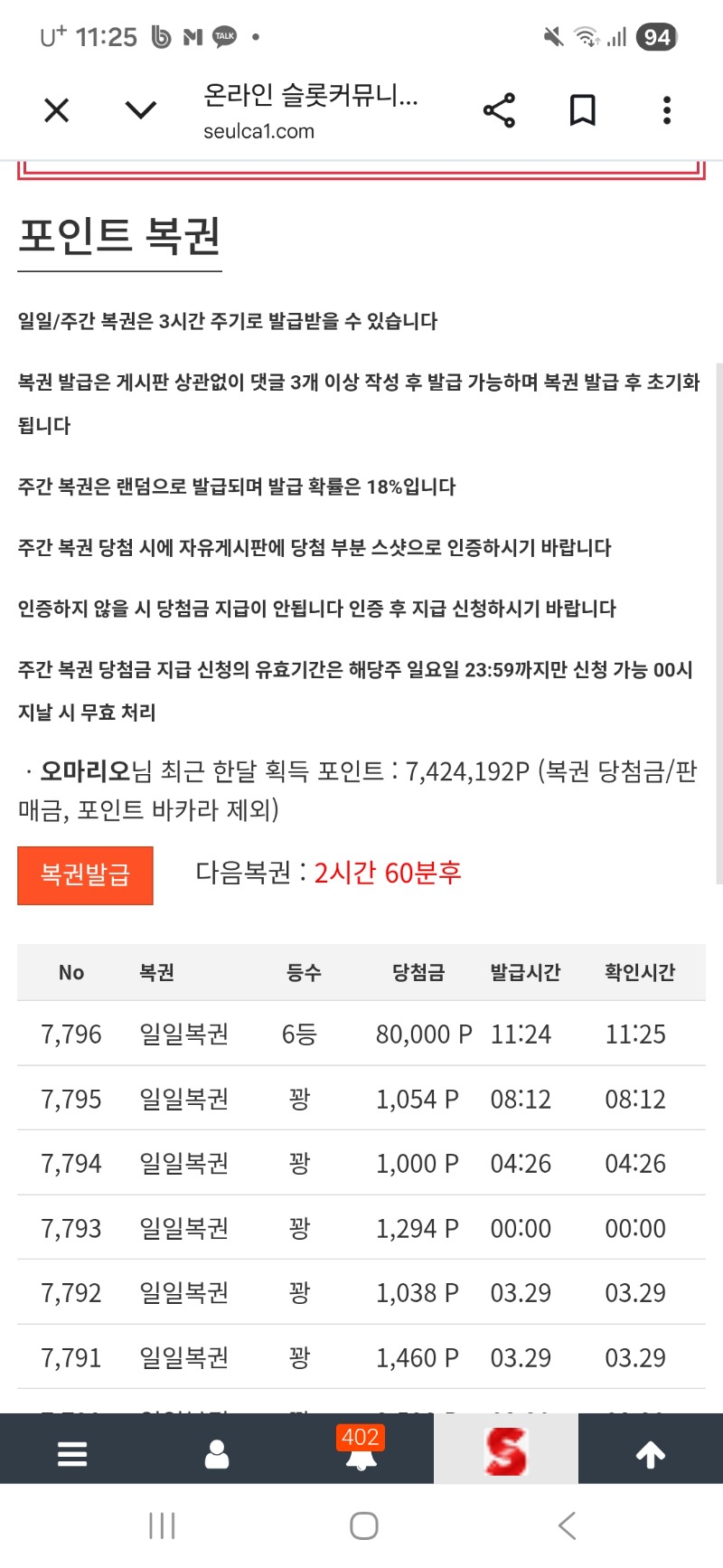 일복이 6등~~ 오마리오 12 1 0 11:25:37 *기프티콘 바코드 노출 주의* <- 감사합니다 ~~ 1 0 https://seulca1.com/bbs/board.php?bo_table=free&wr_id=3736300 Author 5 0 Lv.16 오마리오 16 63,489,754 (67%) 오마리오님 보유 포인트 : P 2,228 +4 03.30 비버야 한입해라 ㅋ +8 03.30 일복이 8등~~ +12 03.30 일복이 6등~~ +10 03.26 용 장줄 맛나게 먹고갑니다~~ +4 03.26 랑 추천게임당첨 슬포~~