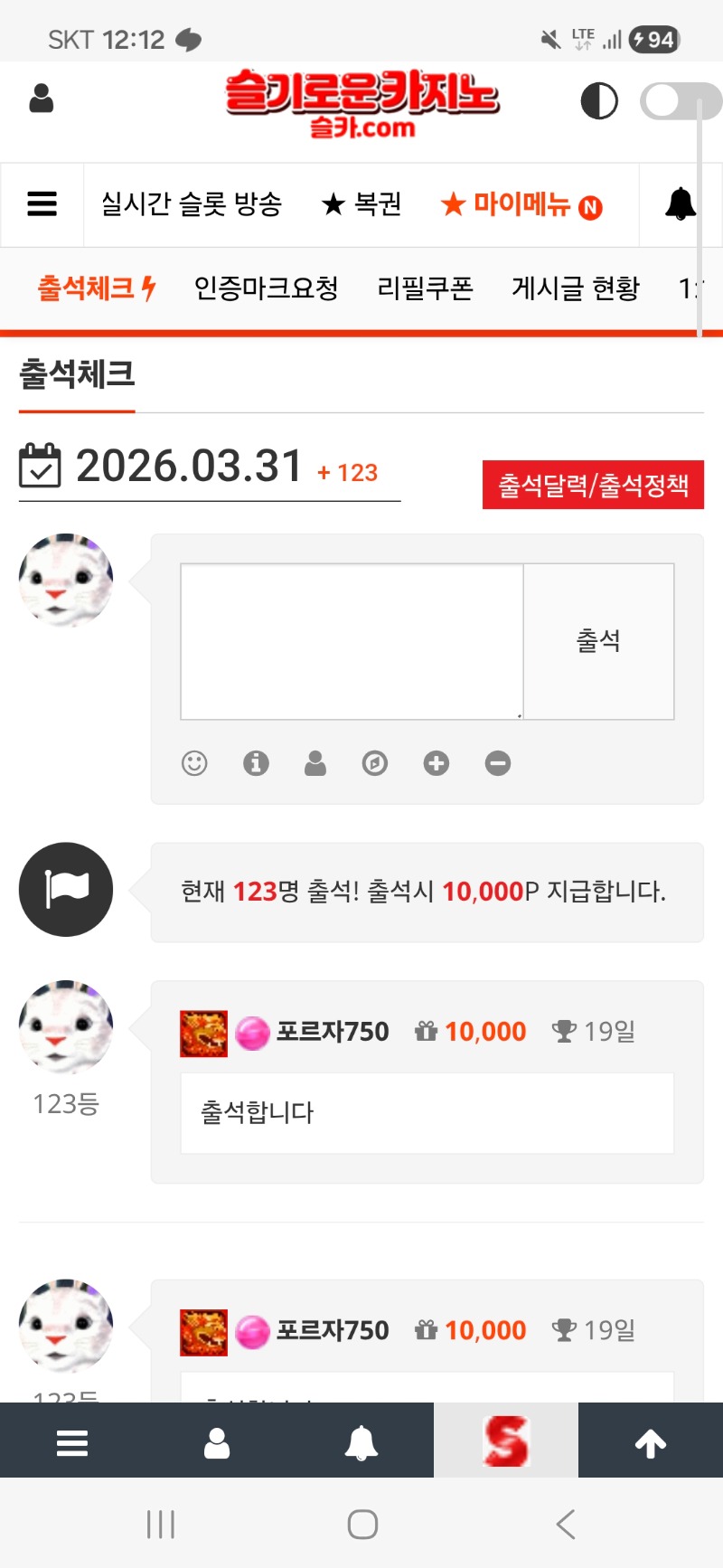 출석합니다 포르자750 0 0 0 03.31 00:12 *기프티콘 바코드 노출 주의* <- 0 0 https://seulca1.com/bbs/board.php?bo_table=free&wr_id=3738831 Author 7 1 Lv.14 포르자750 14 29,219,317 (88%) 포르자750님 보유 포인트 : P 0 +7 04.01 오늘 첫끼 +1 03.31 양형 봐라 03.31 출석합니다 03.30 꽝 스타트 +14 03.30 로또ㅅ호넷콜라보