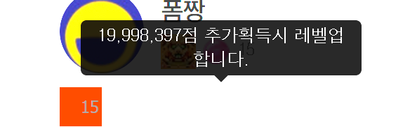 드뎌15레벨로 레벨업은 했는데....아~19.998.397점을 언제 다 채우지...