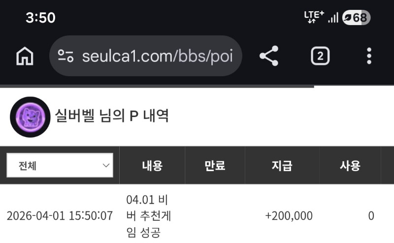 비버 추겜당첨 ~ 실버벨 2 0 0 04.01 15:51 *기프티콘 바코드 노출 주의* <- 옹예~~~ 0 0 https://seulca1.com/bbs/board.php?bo_table=free&wr_id=3743971 Author 8 6 Lv.19 실버벨 19 169,026,577 (0%) 실버벨님 보유 포인트 : P 11,908,420 04.02 만근포인트 감사드려요 ~~ +7 04.01 달이때문에 어렵게 모셨습니다 +7 04.01 비버가 챙겨준 배민~~ +2 04.01 비버 추겜당첨 ~ +6 04.01 랑이 추겜당첨 ~~