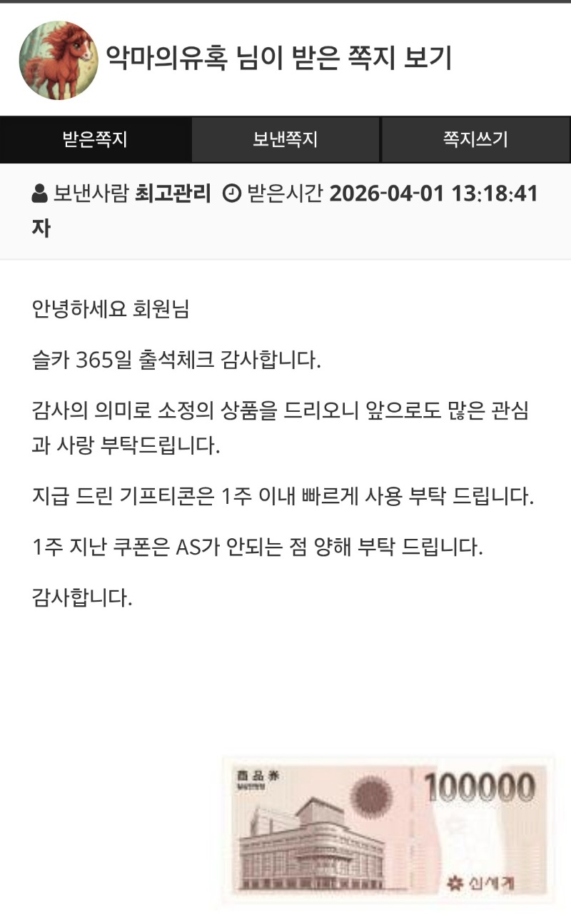출첵365일 신세계 기프티콘 감사합니다 악마의유혹 16 6 0 19:18:28 *기프티콘 바코드 노출 주의* <- 유튜브를 통해서 슬카를 알게되었는데 벌써1년 출첵을 하게되었네요 6 0 https://seulca1.com/bbs/board.php?bo_table=free&wr_id=3744603 Author 0 0 Lv.10 악마의유혹 10 9,733,078 (86%) 악마의유혹님 보유 포인트 : P 419,728 +16 04.01 출첵365일 신세계 기프티콘 감사합니다 +3 04.01 일복7등 감사합니다 +1 03.31 맛저하세요 +1 03.31 맛점 하세요 +16 03.31 만근 신청합니다