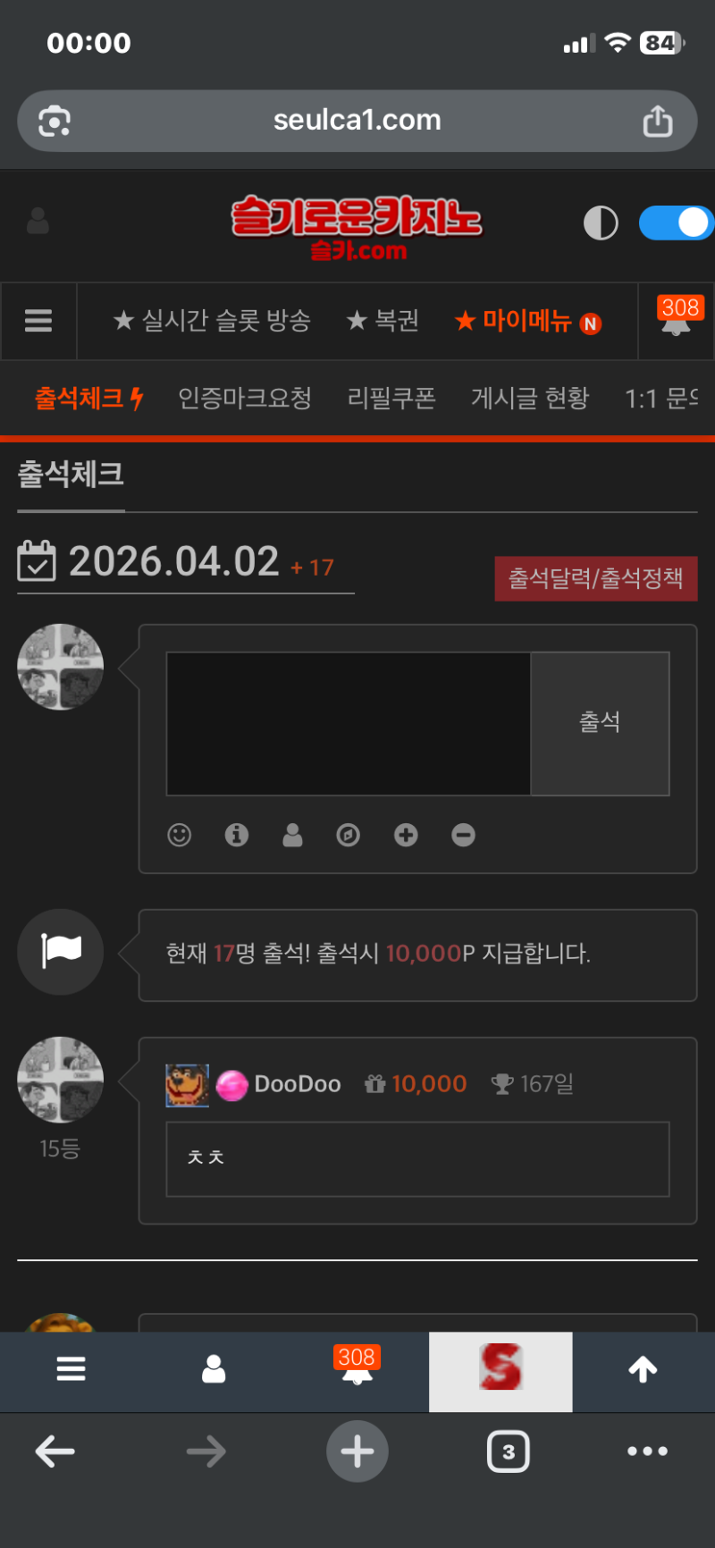 출첵 DooDoo 0 0 0 00:01:26 *기프티콘 바코드 노출 주의* <- 0 0 https://seulca1.com/bbs/board.php?bo_table=free&wr_id=3745301 Author 0 0 Lv.9 DooDoo 9 5,523,571 (38%) DooDoo님 보유 포인트 : P 1,904,742 04.02 만근포 나이스 04.02 출첵 +4 04.01 최바비 1,2등 적중 +14 04.01 출석 만근 신청 +2 03.24 미니형난 치킨 당첨 감사
