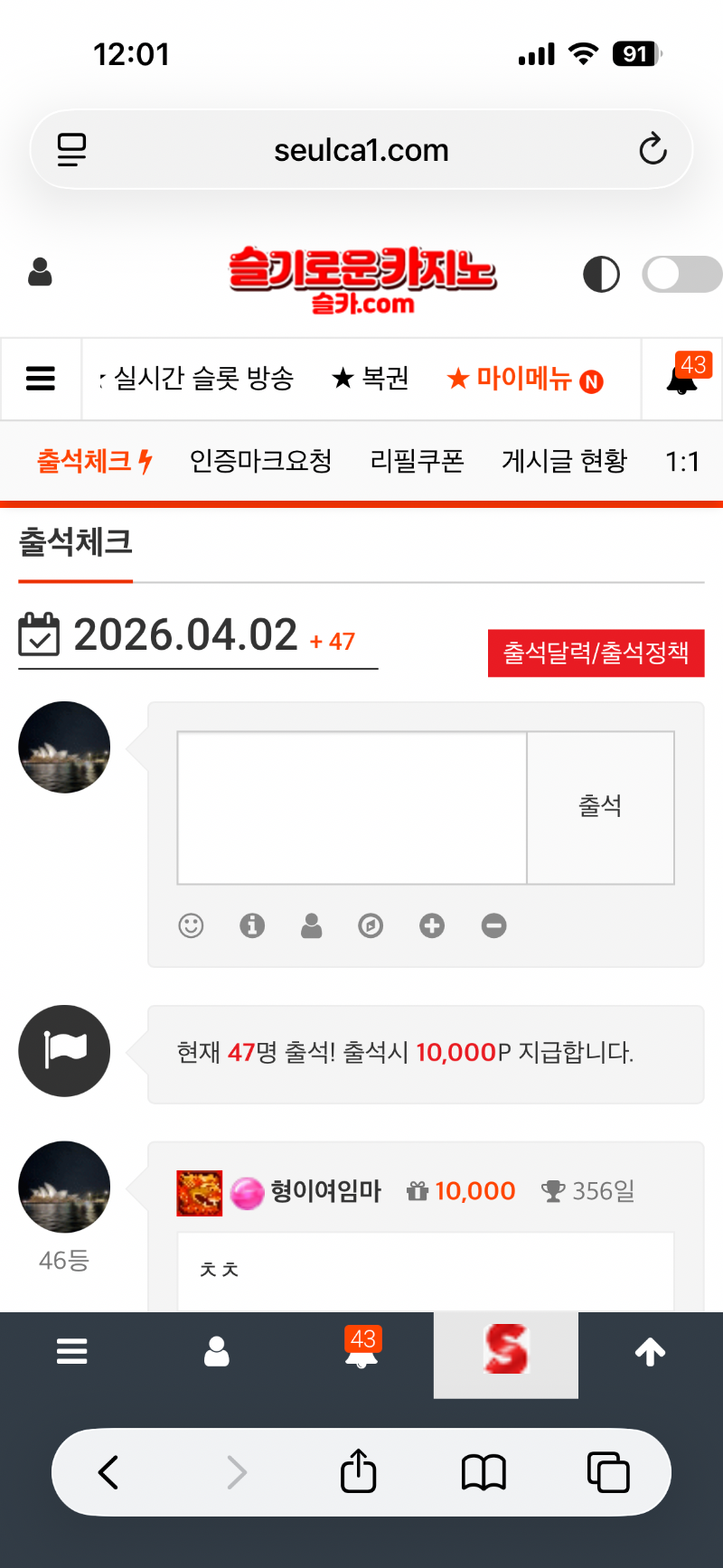 출석 형이여임마 0 0 0 00:01:34 *기프티콘 바코드 노출 주의* <- 0 0 https://seulca1.com/bbs/board.php?bo_table=free&wr_id=3745304 Author 2 0 Lv.14 형이여임마 14 27,861,384 (69%) 형이여임마님 보유 포인트 : P 2,008,699 04.02 만근포 감사합니다 04.02 출석 +1 04.01 맛저하세용 +2 04.01 맛점하세용 +1 04.01 나인 이벤트보너스 감사합니다