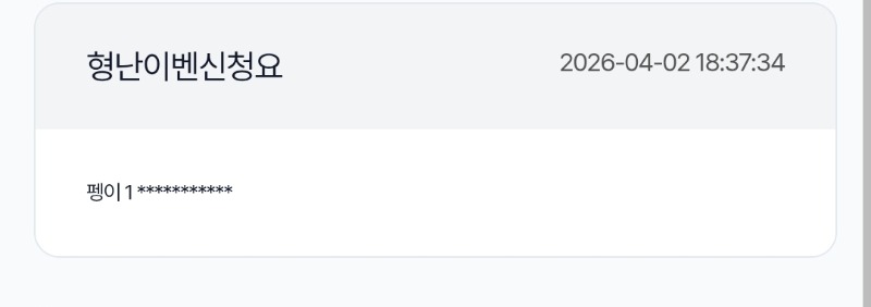 시안 형난 이벤신청완 무조건한방가자 0 0 0 18:45:45 *기프티콘 바코드 노출 주의* <- 가봅시다~~~~ 아침에 갑자기 꿈에 펭이씨가 나와서.. 급 갈아탐 ㅋㅋㅋㅋ 0 0 https://seulca1.com/bbs/board.php?bo_table=free&wr_id=3748005 Author 0 0 Lv.9 무조건한방가자 9 4,047,238 (1%) 무조건한방가자님 보유 포인트 : P 8,810 04.02 저녁복췍은 04.02 시안 형난 이벤신청완 +8 04.02 꽝보다는 좋은거겠죠..주보기..10등 +17 04.02 시안 프라 8대0 소액승 +32 04.01 시안 8대0 승