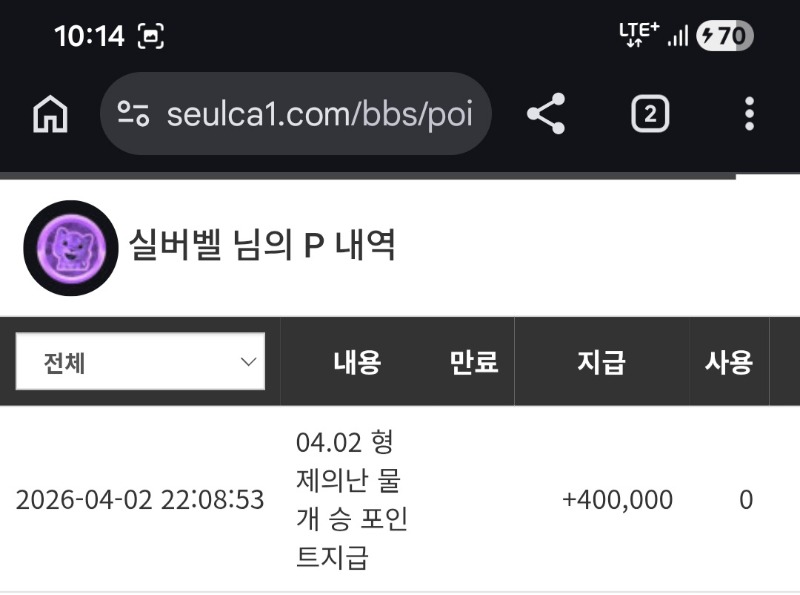물개 축하해~~@@ 실버벨 4 1 0 22:15:37 *기프티콘 바코드 노출 주의* <- 펭이도 고생했엉~~~ 1 0 https://seulca1.com/bbs/board.php?bo_table=free&wr_id=3748661 Author 8 6 Lv.19 실버벨 19 169,427,861 (0%) 실버벨님 보유 포인트 : P 14,522,652 04.02 오늘 하루도 수고 많으셨습니다 +4 04.02 사자 추겜당첨 ~~~@@ +4 04.02 물개 축하해~~@@ +4 04.02 오늘도 막상막하 형난ㅋㅋ +14 04.02 키보드 반품완료...