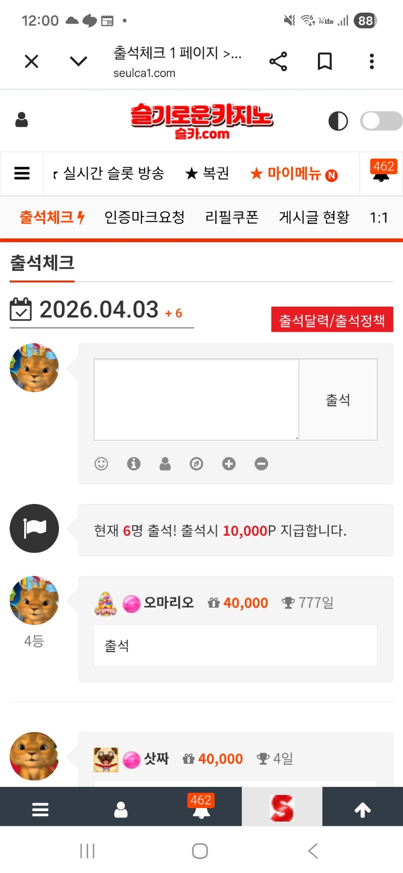 777출석~~~ 오마리오 0 0 0 00:00:45 *기프티콘 바코드 노출 주의* <- ㅎㅎ 0 0 https://seulca1.com/bbs/board.php?bo_table=free&wr_id=3748938 Author 5 0 Lv.16 오마리오 16 63,750,006 (68%) 오마리오님 보유 포인트 : P 1,600 +2 04.03 달이 추천게임 당첨슬포~~ 04.03 777출석~~~ +24 04.02 일복이 3연타~~~ +4 04.02 일복이 2등~~ +1 04.01 시안 이벤머니~~