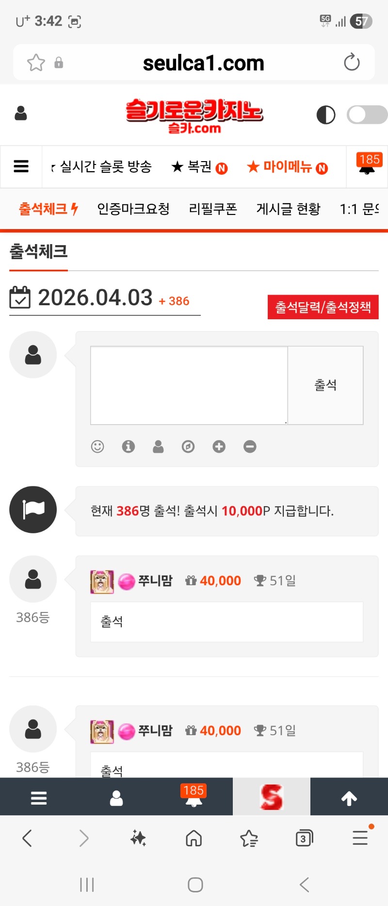 출석 쭈니맘 0 0 0 03:42:57 *기프티콘 바코드 노출 주의* <- 0 0 https://seulca1.com/bbs/board.php?bo_table=free&wr_id=3749433 Author 0 0 Lv.8 쭈니맘 8 3,504,319 (50%) 쭈니맘님 보유 포인트 : P 1,619,318 04.03 출석 04.02 형난.. 물개승~~ +1 04.02 굿모닝입니다 +12 04.02 존비스쿨 180 04.02 출첵완료