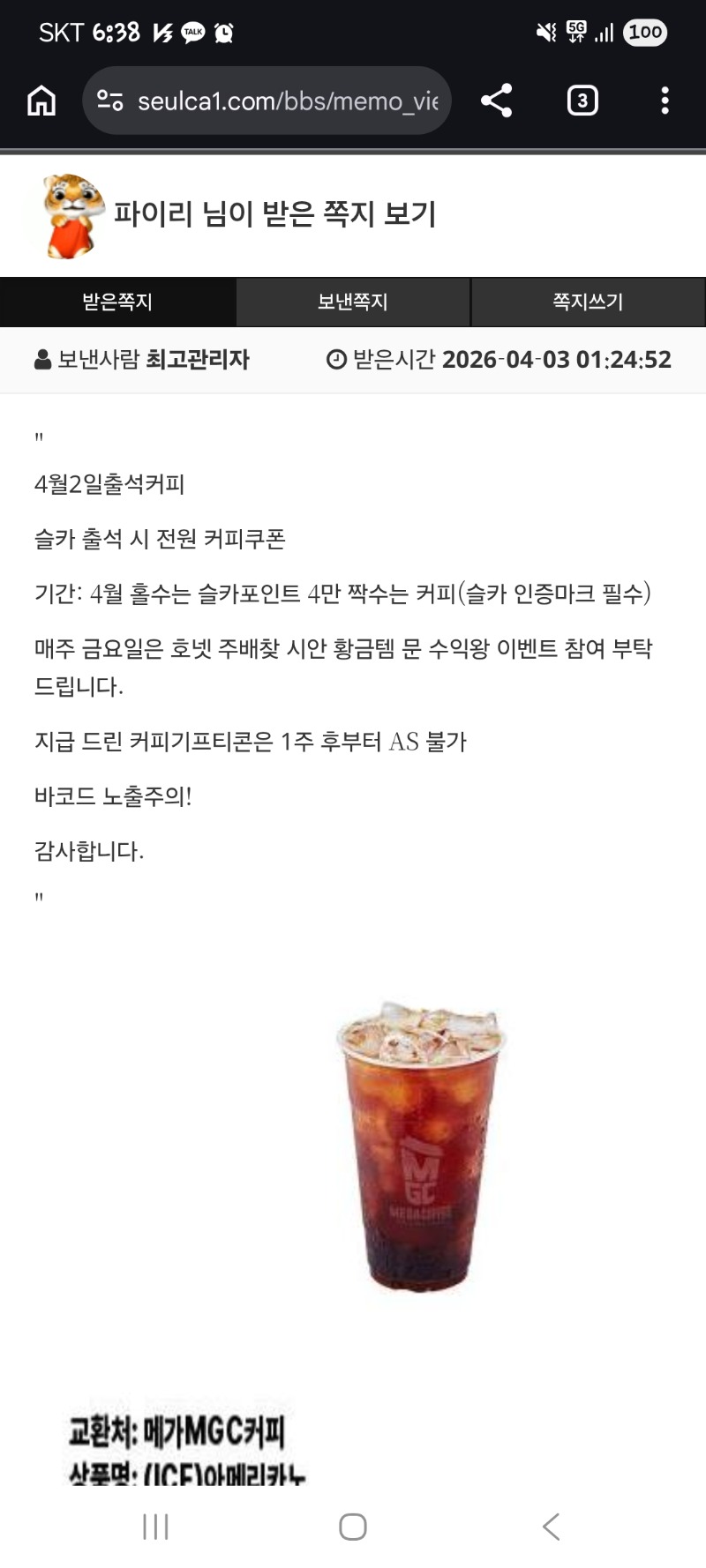 출첵코피! 파이리 0 0 0 06:39:02 *기프티콘 바코드 노출 주의* <- 0 0 https://seulca1.com/bbs/board.php?bo_table=free&wr_id=3749604 Author 3 1 Lv.13 파이리 13 18,826,839 (16%) 파이리님 보유 포인트 : P 0 +11 04.03 오라메 122배*400 +7 04.03 오라메 181배*200 +8 04.03 오라메 126배*250 +8 04.03 퓨보메 142배*1000 +6 04.03 퓨보메 178*200