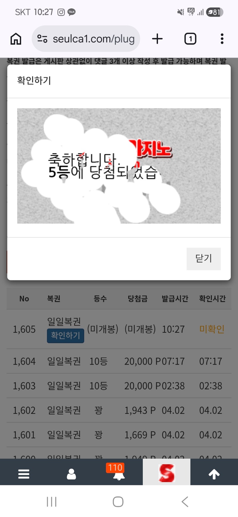 오늘 일복 승률 좋네욬ㅋㅋ 5등 ㅅㅅ 뭉뭉2 6 0 0 10:30:41 *기프티콘 바코드 노출 주의* <- 0 0 https://seulca1.com/bbs/board.php?bo_table=free&wr_id=3750107 Author 0 0 Lv.10 뭉뭉2 10 9,923,628 (96%) 뭉뭉2님 보유 포인트 : P 5,118,690 +6 04.03 오늘 일복 승률 좋네욬ㅋㅋ 5등 ㅅㅅ +2 04.03 연타 일복10등 ㅎㅎ +4 04.03 일복 10등 ㅎㅎ 04.01 출첵이용ㅎㅎ +2 03.31 모닝 오늘첫일복!10등