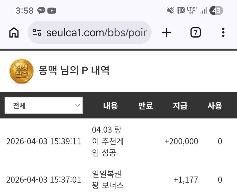 랑추 개시 슬포~ 몽맥 12 0 0 15:58:41 *기프티콘 바코드 노출 주의* <- 0 0 https://seulca1.com/bbs/board.php?bo_table=free&wr_id=3751023 Author 49 24 Lv.19 몽맥 19 217,111,866 (0%) 몽맥님 보유 포인트 : P 636,301 +6 04.03 국야 와..강민호원래 이렇게 못했나.. +10 04.03 진정한 슬카인이라면 방송을보면서도 스포츠까지 아벤티비로~ +12 04.03 슈슈 슈퍼구매 611 +2 04.03 슈슈 슈퍼구매 203 +10 04.03 국야 또속 해봅니다~치고박아라 돈도없구 소액뱃